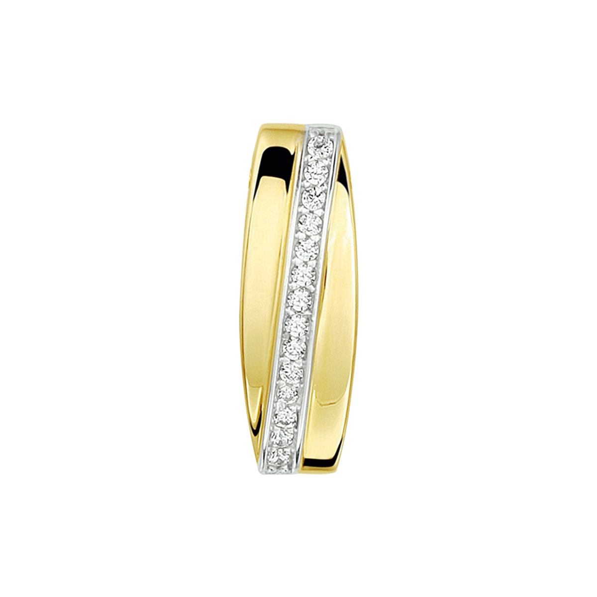 Geel met witgoud gestifte hanger van 19×6.5mm uitgevoerd met een luxe rijzetting van briljant geslepen zirkonia. De hanger is te combineren met bijpassende sieraden uit onze collectie.