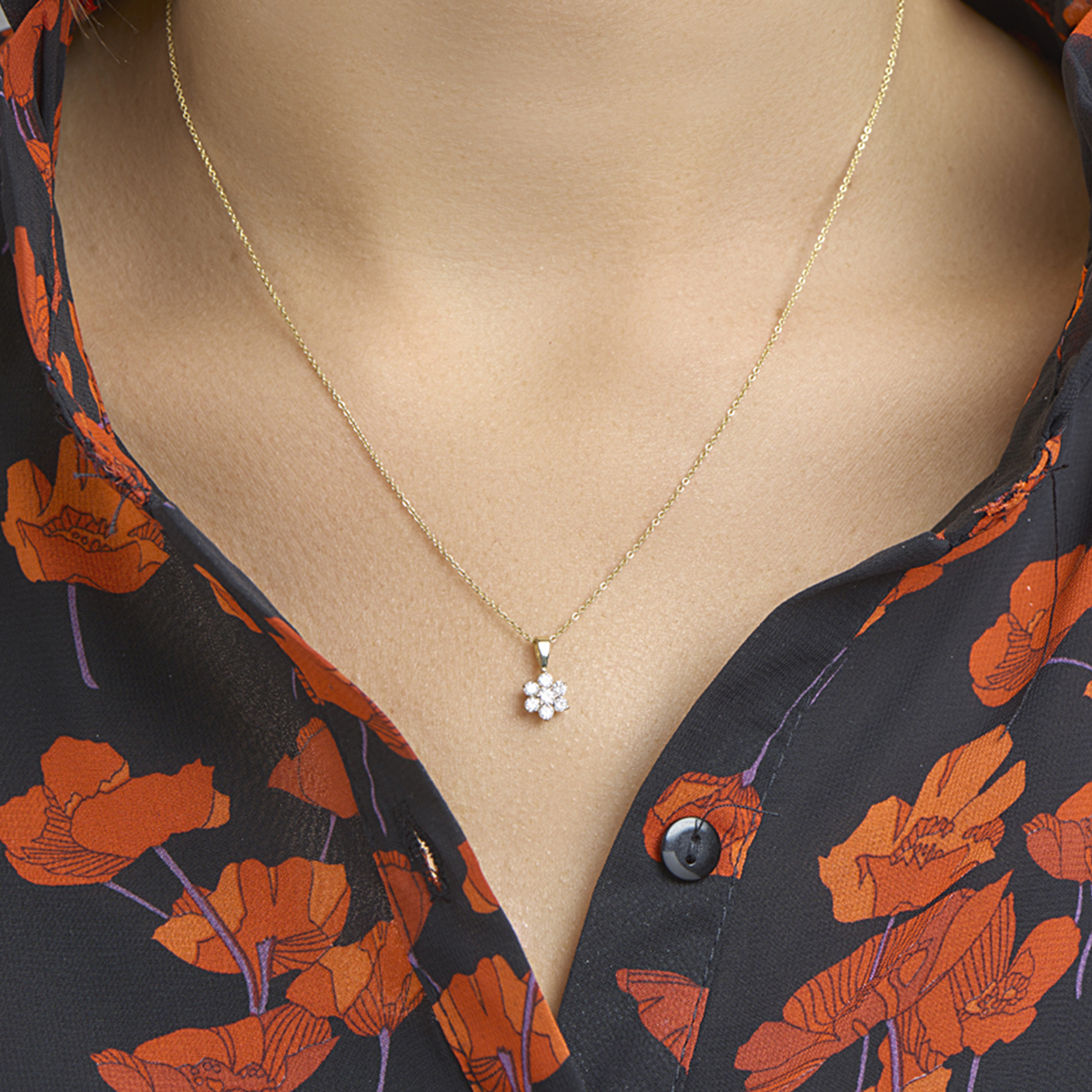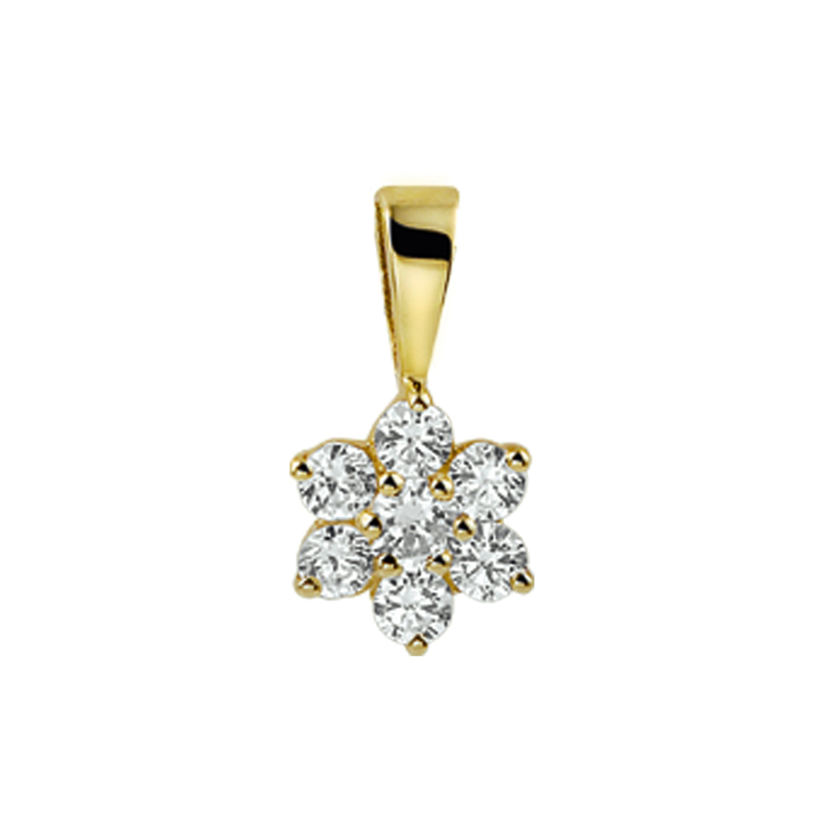 Geelgouden hanger met zirkonia. De hanger is onderdeel van een set.