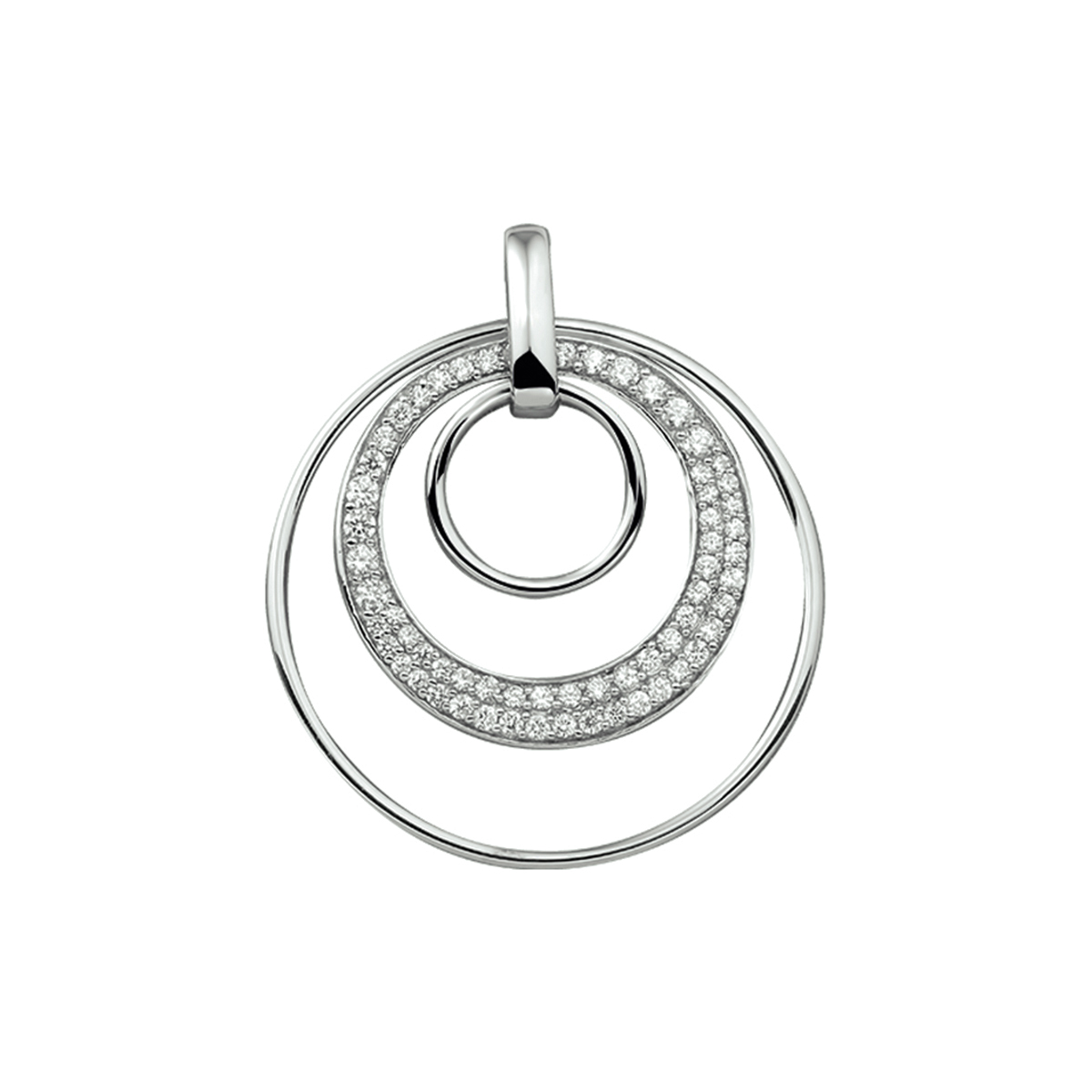 Gerhodineerd zilveren hanger met zirkonia. De hanger heeft een los hangoog.