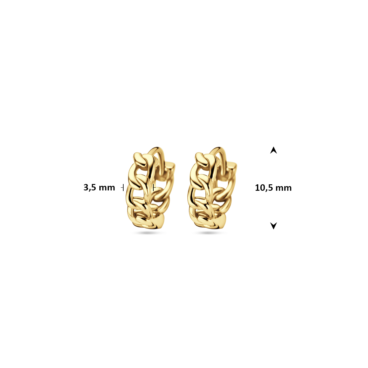 Trendy verguld op zilveren klapoorringen met een schakelmotief en een stevige scharniersluiting. De klapoorringen zijn goed te combineren met bijpassende sieraden uit onze collectie. Geen garantie op plating.