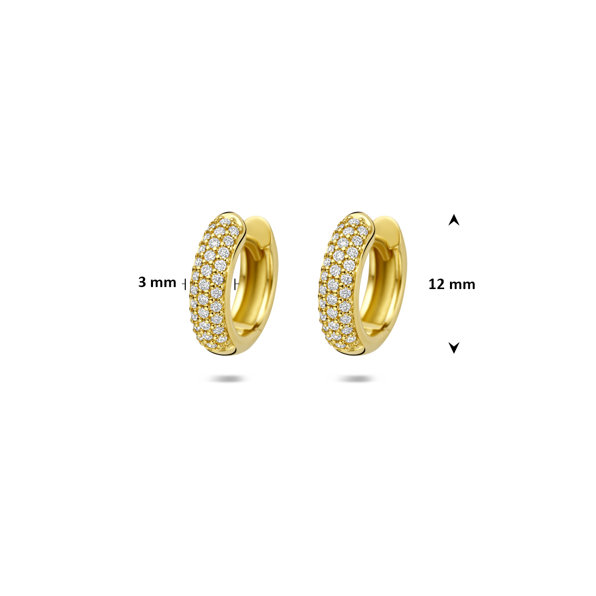 14k Geelgouden klapoorringen uitgevoerd met diamant. De klapoorringen hebben een afmeting van 12x3mm. Het totale diamantgewicht is 0.21ct.