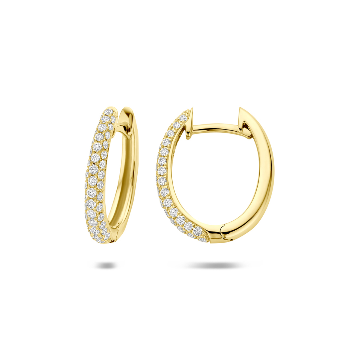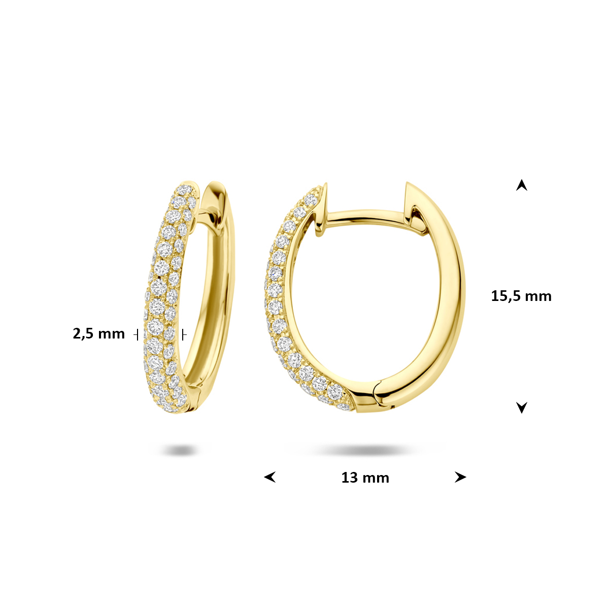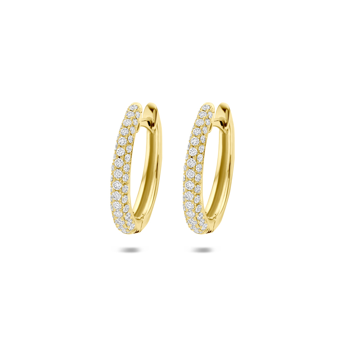 14k Geelgouden klapoorringen uitgevoerd met diamant. De klapoorringen hebben een afmeting van 15.5×2.5mm. Het totale diamantgewicht is 0.38ct.