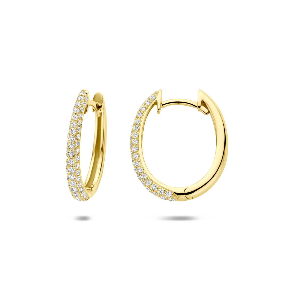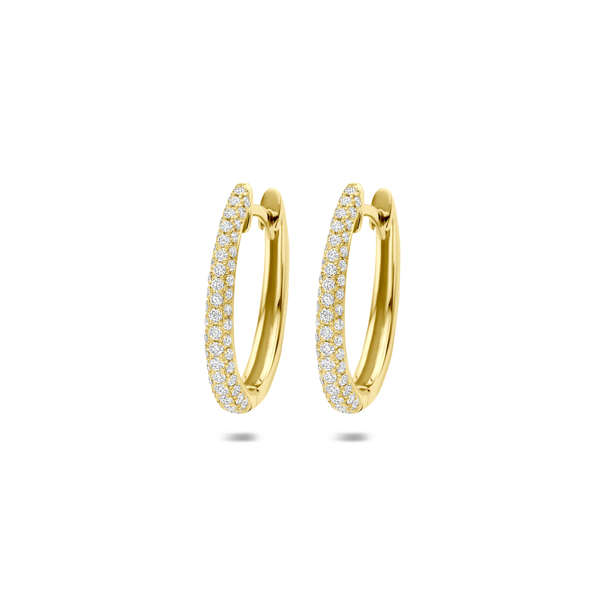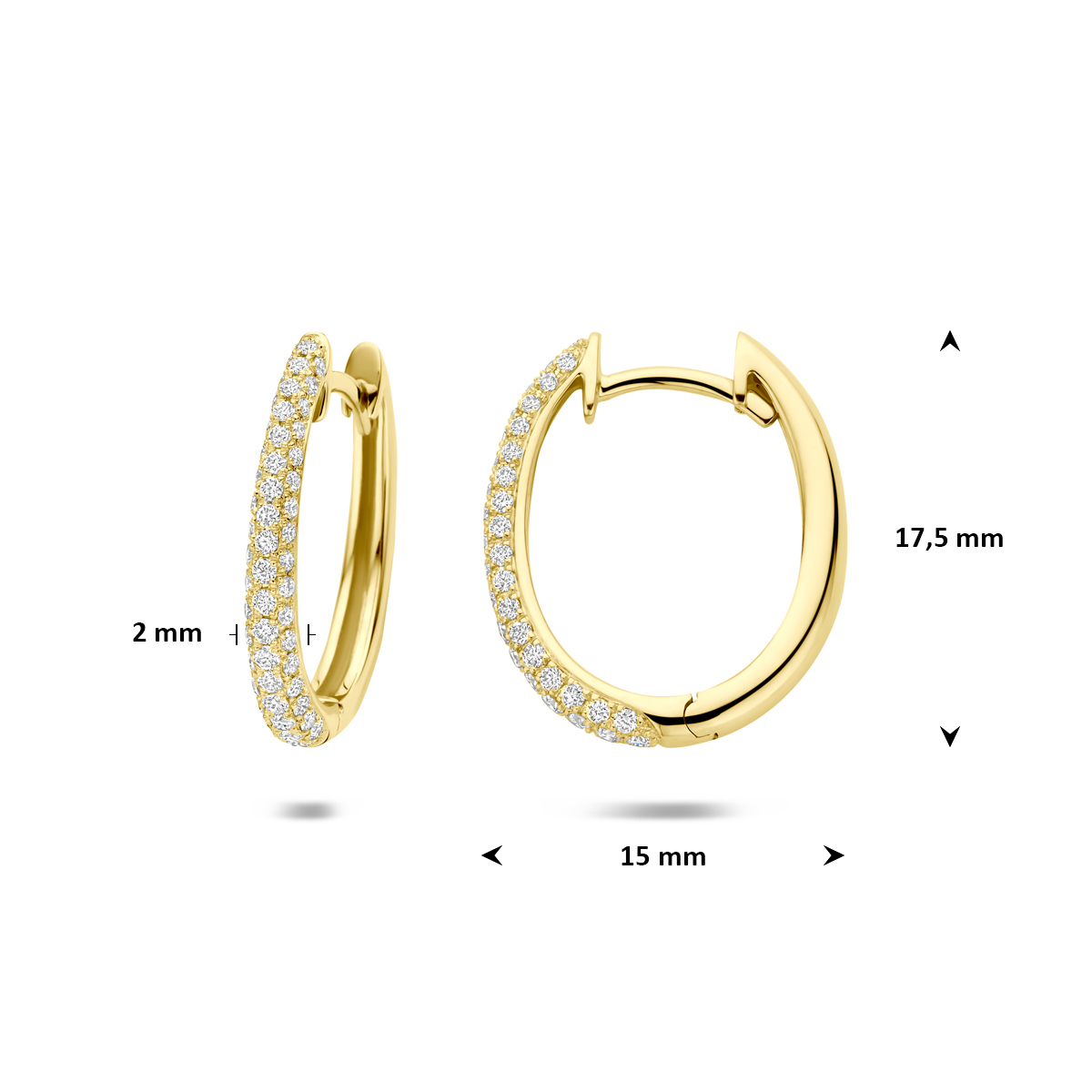14k Geelgouden klapoorringen uitgevoerd met diamant. De klapoorringen hebben een afmeting van 17.5x2mm. Het totale diamantgewicht is 0.43ct.
