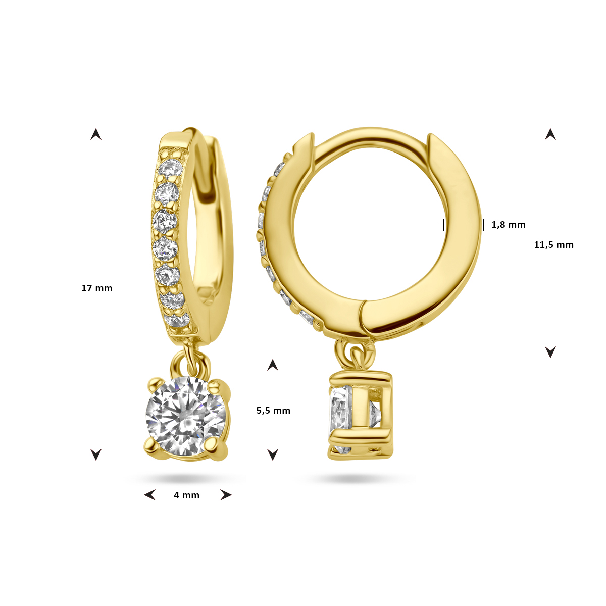 Verguld op 925 zilveren klapoorringen uitgevoerd met zirkonia. De klapoorringen hebben een totale hoogte van 17mm. Geen garantie op plating.