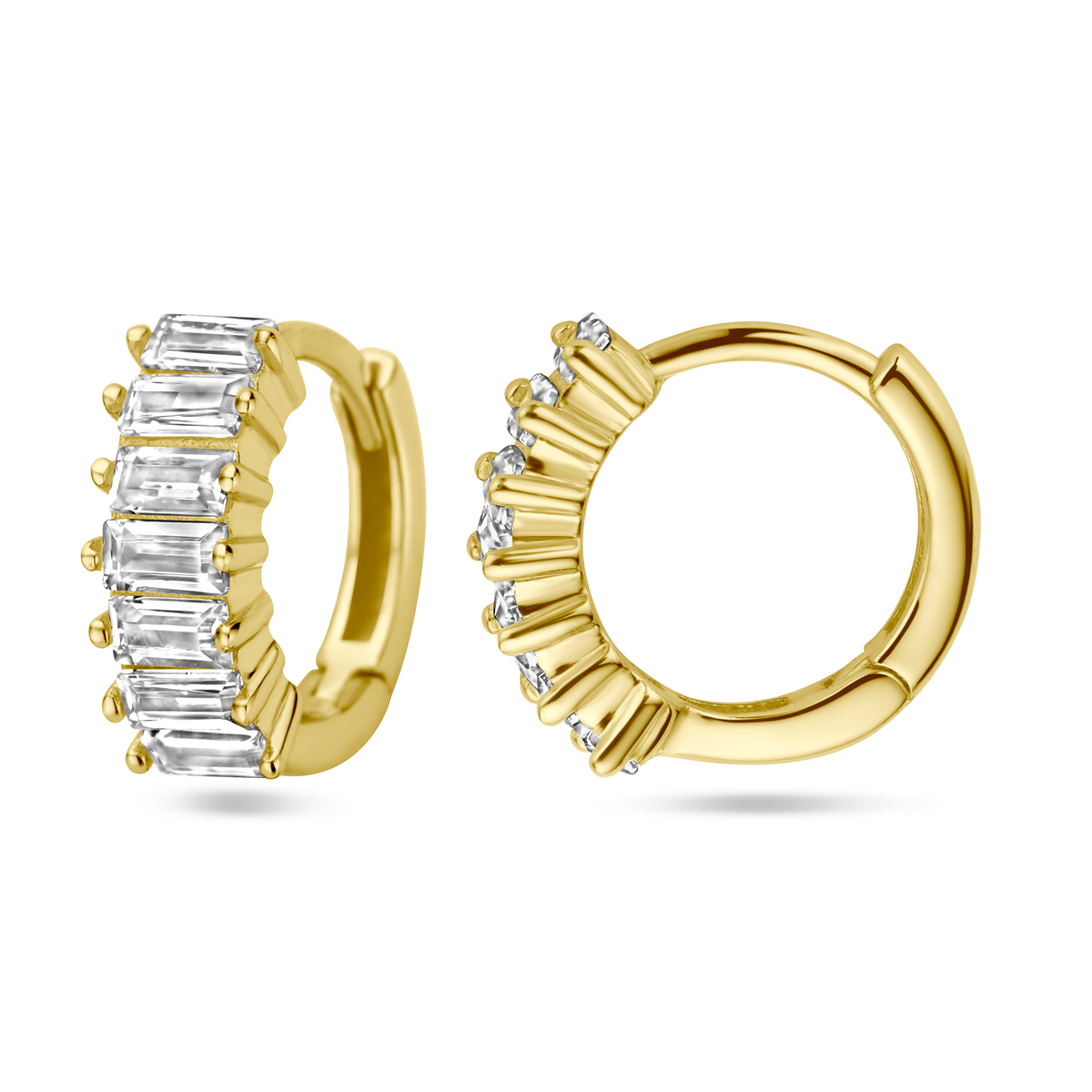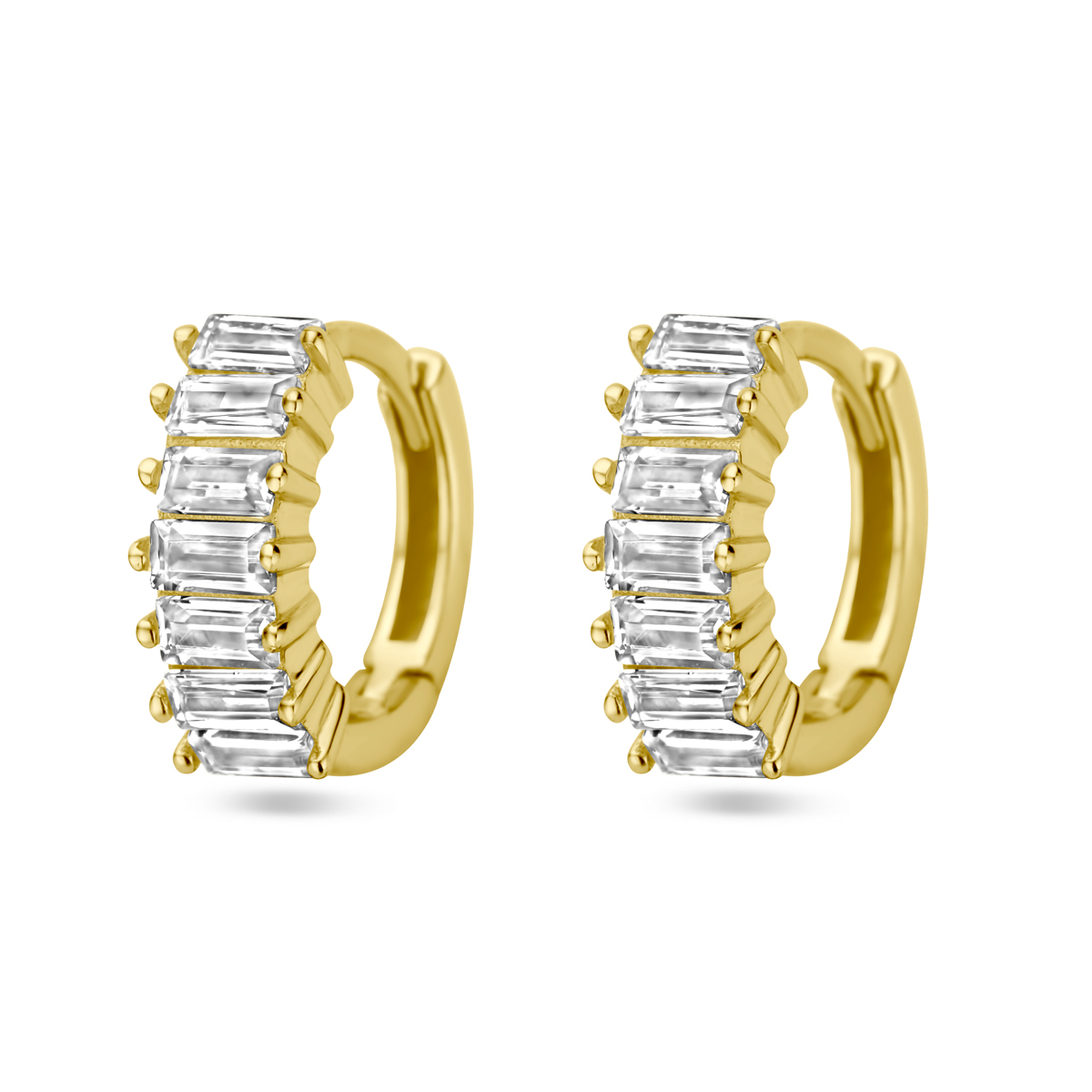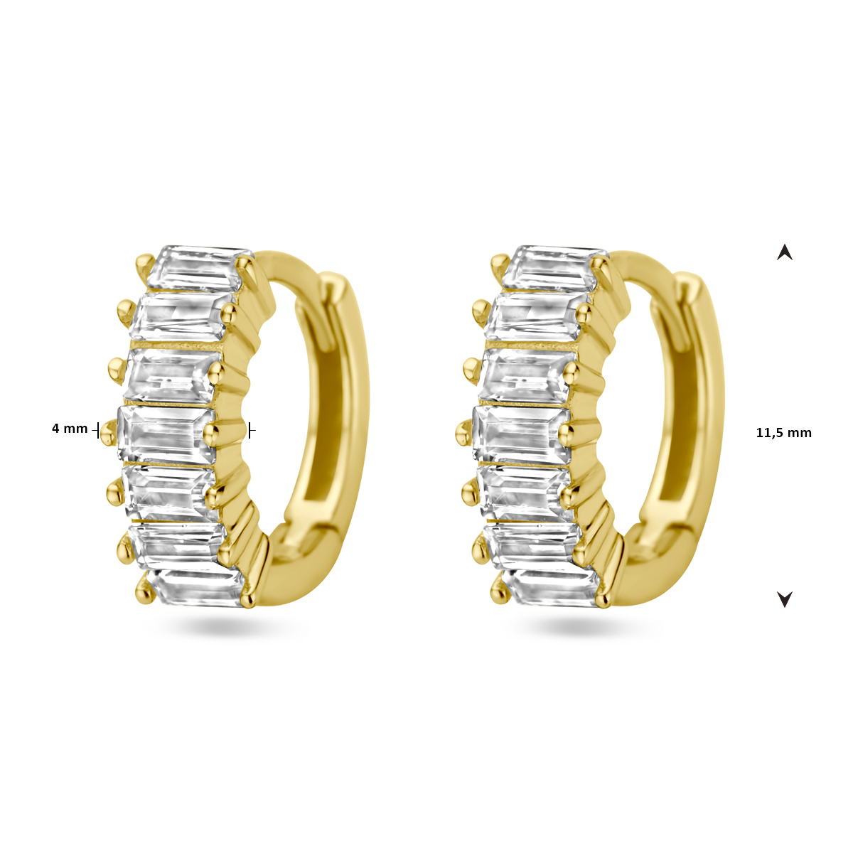 Verguld op 925 zilveren klapoorringen uitgevoerd met zirkonia. De klapoorringen hebben een afmeting van 11.5x4mm. Geen garantie op de plating.