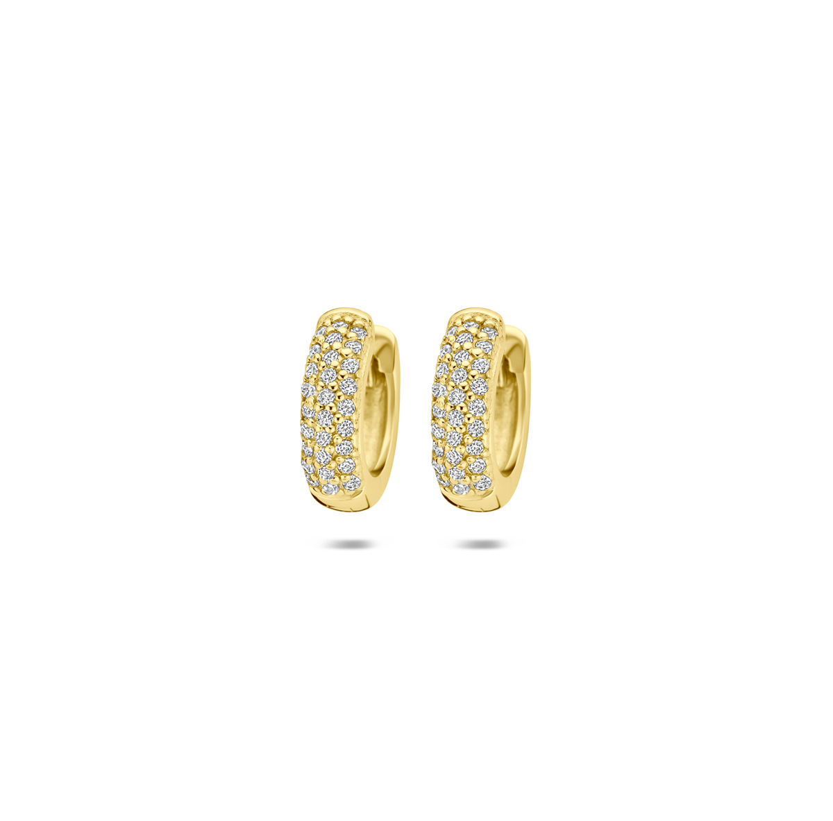 Verguld geel 925 zilveren klapoorringen met zirkonia. De klapoorringen hebben een afmeting van 12×3.5mm. Geen garantie op plating.