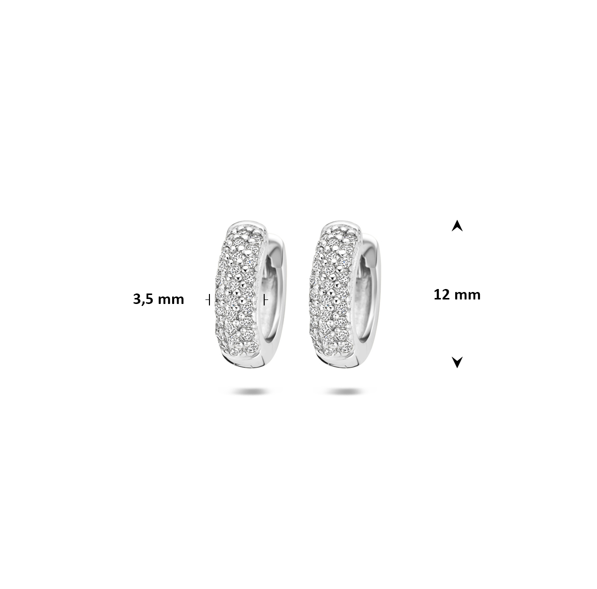 Gerhodineerd 925 zilveren klapoorringen met zirkonia. De klapoorringen hebben een afmeting van 12×3.5mm.