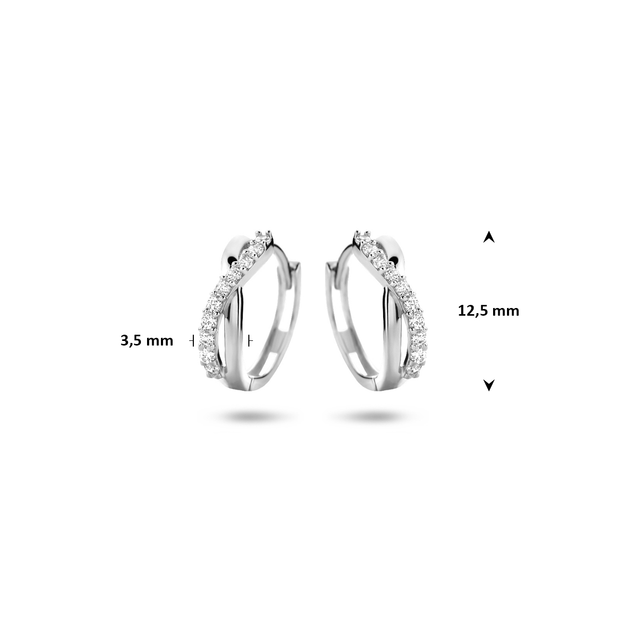 14k Witgouden klapoorringen uitgevoerd met zirkonia. De oorringen hebben een diameter van 12,5mm.