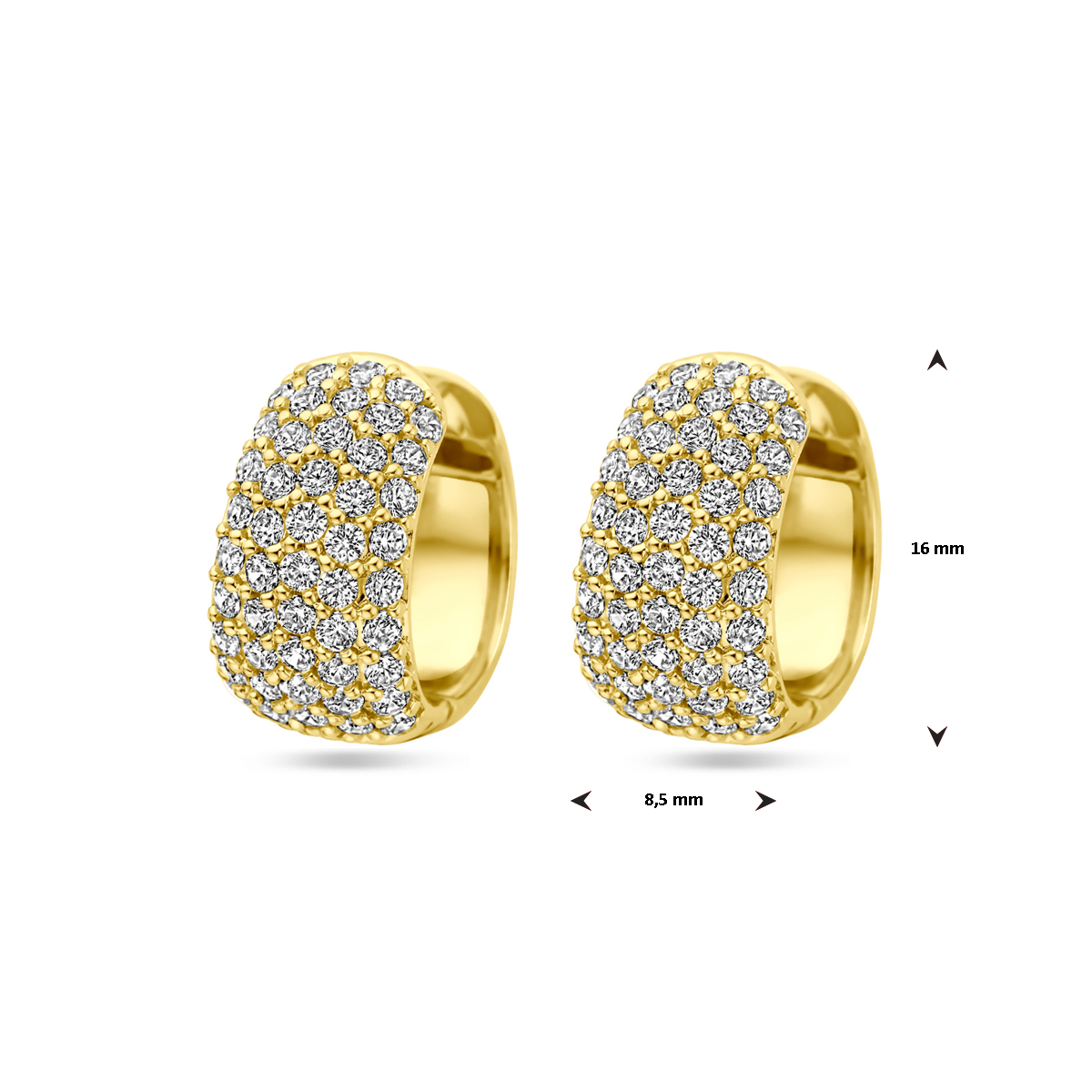 Verguld op 925 zilveren klapoorringen uitgevoerd met zirkonia. De klapoorringen hebben een afmeting van 16×8.5mm. Geen garantie op de plating.