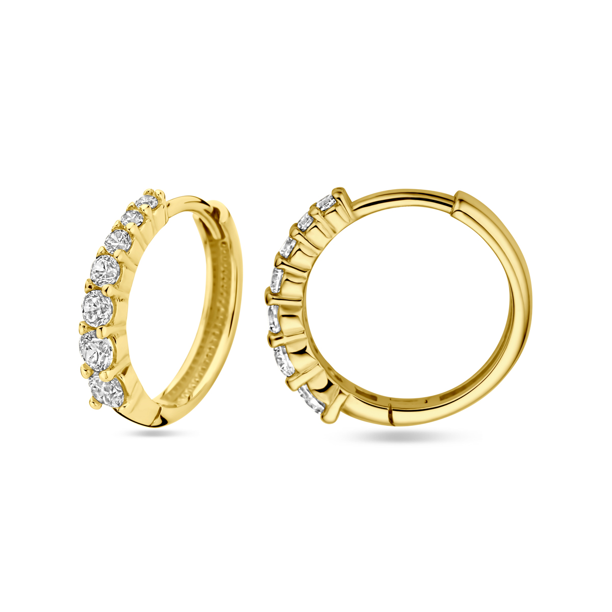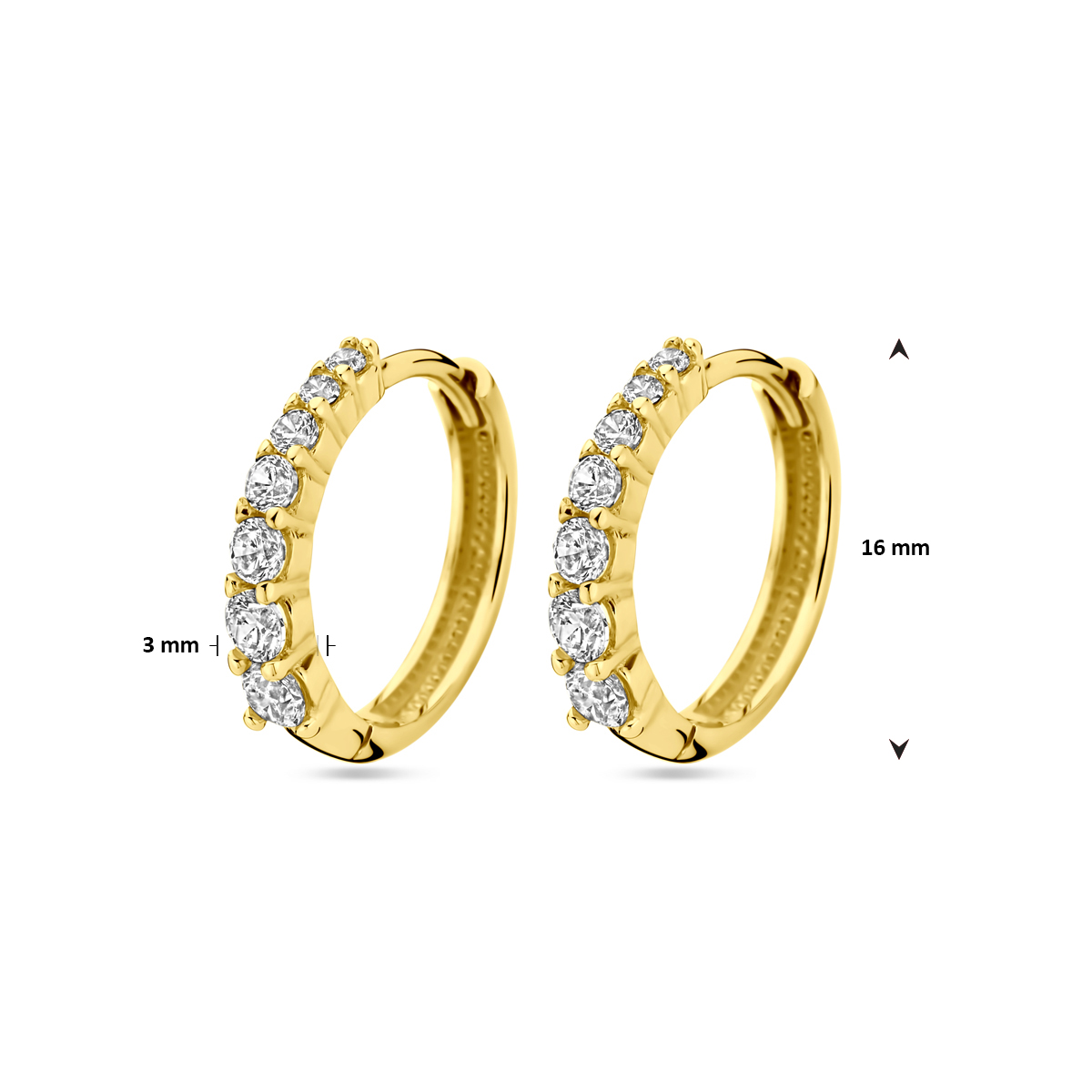 14k Geelgouden klapoorringen uitgevoerd met zirkonia. De klapoorringen hebben een afmeting van 16x3mm.