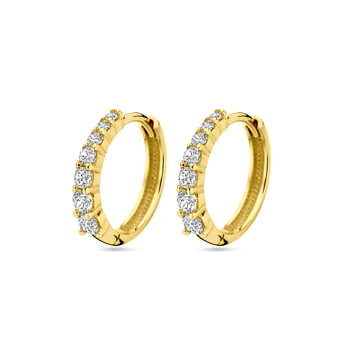 klapoorringen zirkonia 16 mm 14K geelgoud