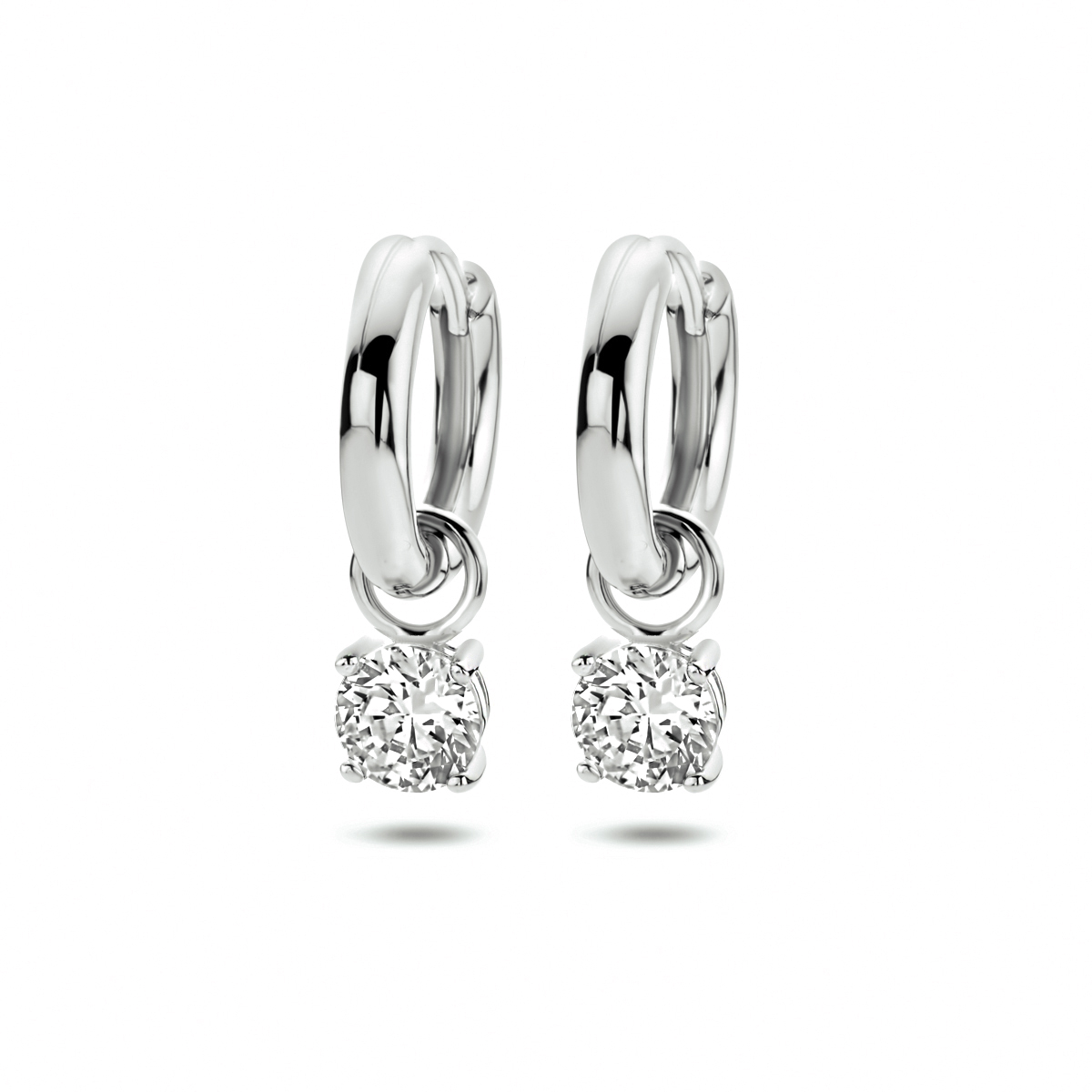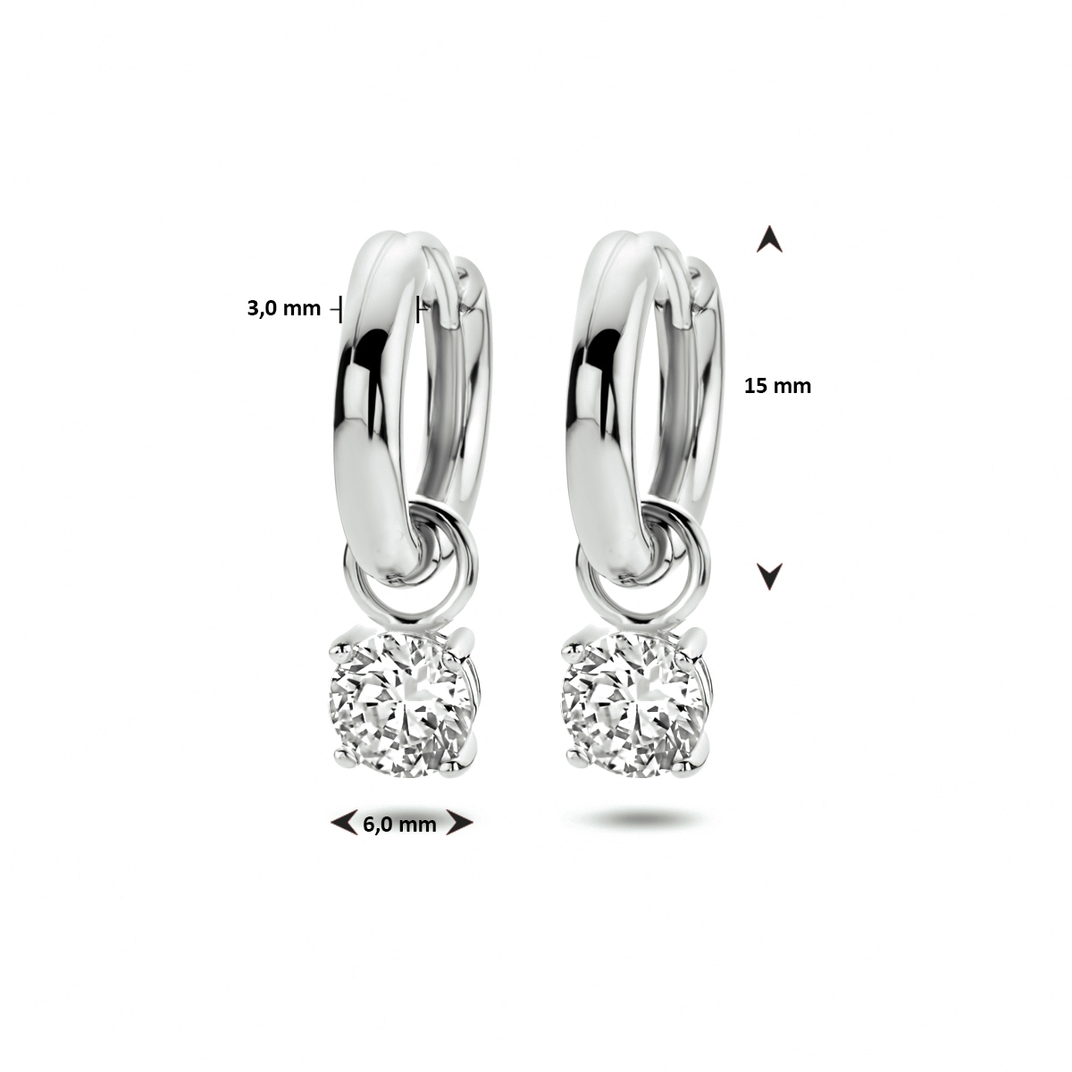 Gerhodineerd zilveren klapoorringen met een zirkonia hanger.