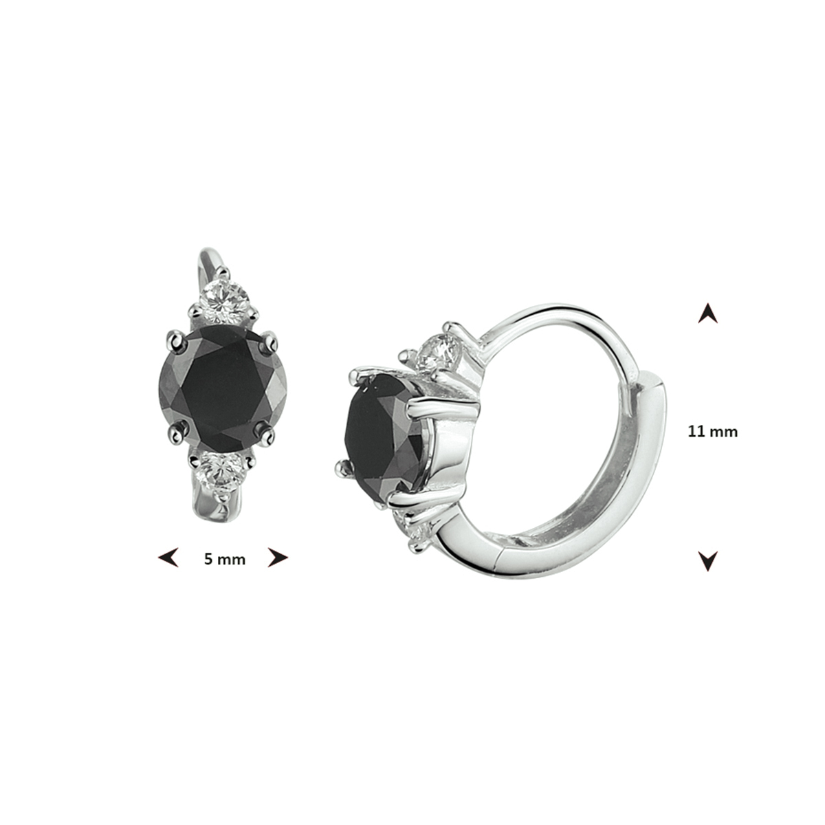 Gerhodineerd 925 zilveren klapoorringen uitgevoerd met zwart zirkonia. De oorringen hebben een afmeting van 11x5mm.