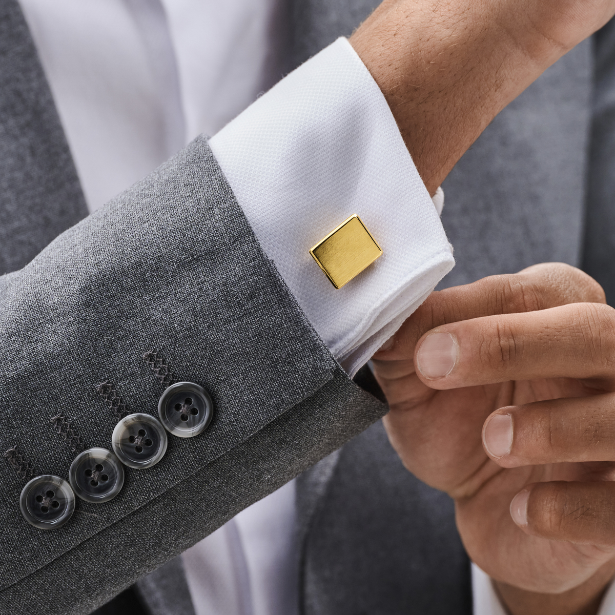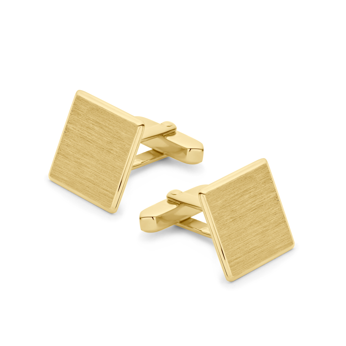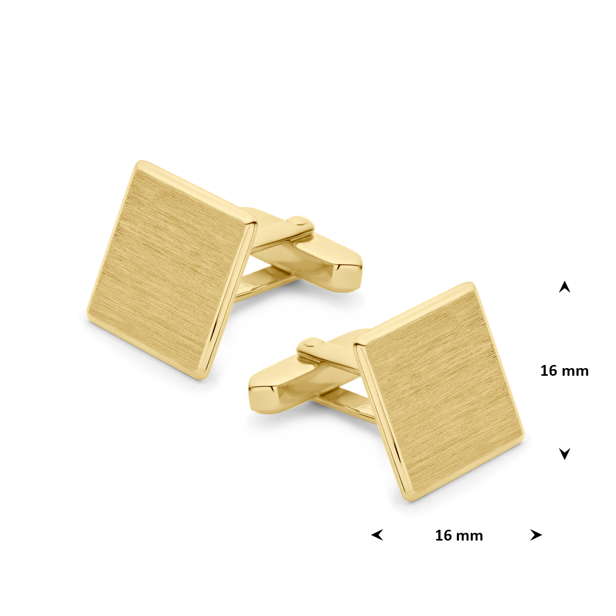 Verguld geel 925 zilveren manchetknopen uitgevoerd in poli/mat. De manchetknopen hebben een afmeting van 16x16mm. Geen garantie op plating.