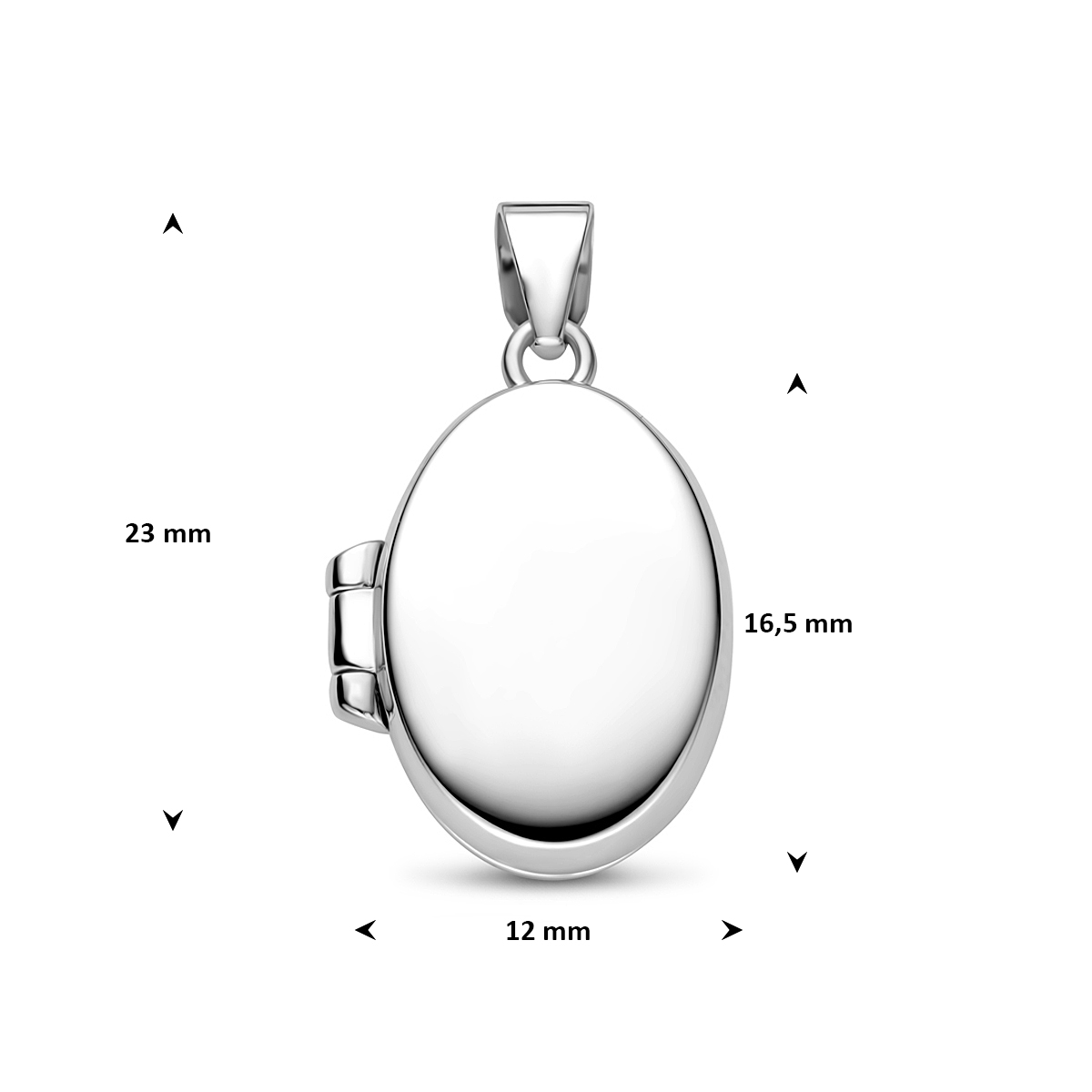 Gerhodineerd 925 zilveren medaillon met een hoogte van 16.5mm excl. oogje en een breedte van 12mm.