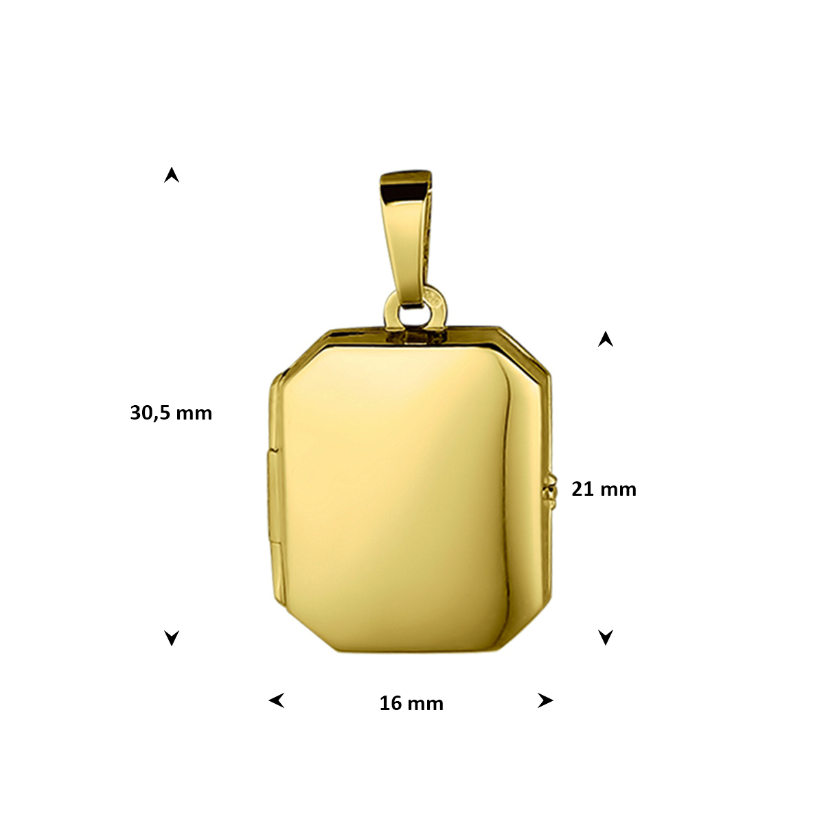 14k Geelgouden medaillon met een hoogte van 21mm excl. oogje en een breedte van 16mm.