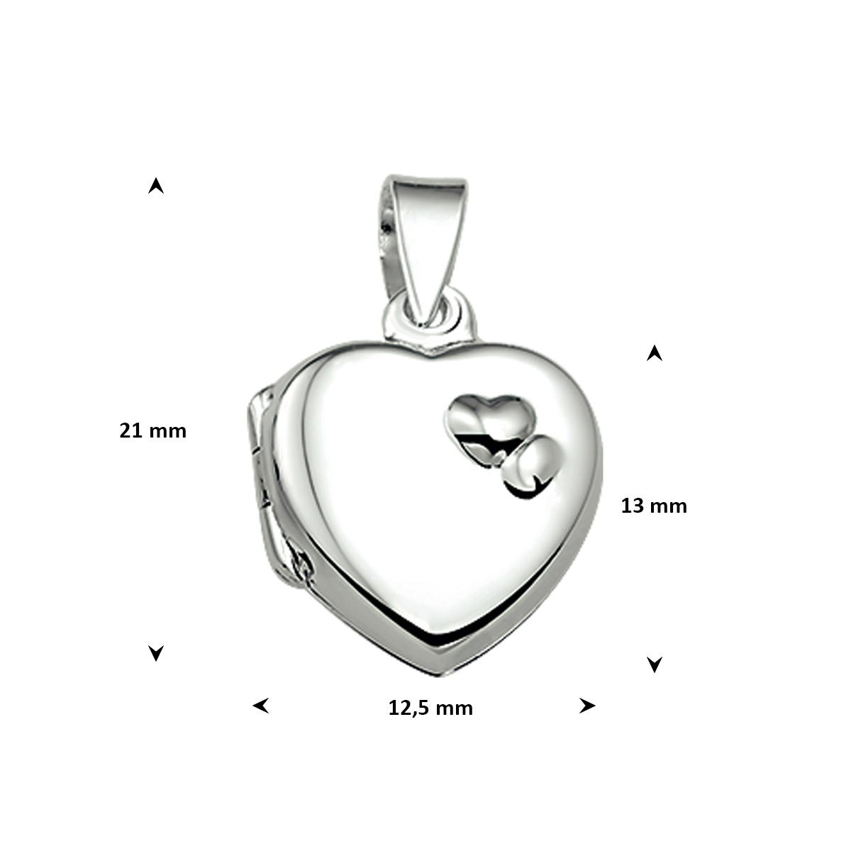 Zilveren hart medaillon met een hoogte van 13mm excl. oogje en een breedte van 12.5mm.