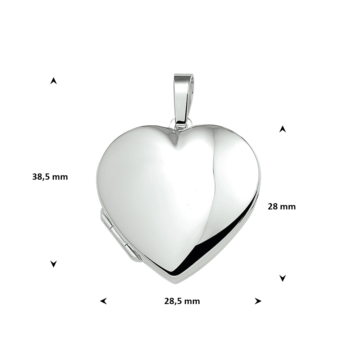 Zilveren medaillon in de vorm van een hart. Het medaillon heeft een hoogte van 28mm excl. oogje en een breedte van 28.5mm.