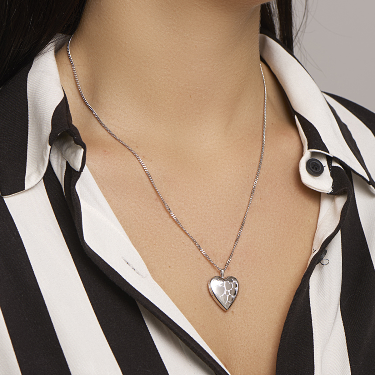 Gerhodineerd zilveren hart medaillon. In dit medaillon passen twee fotos.