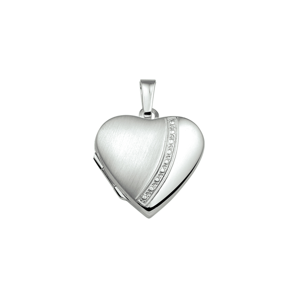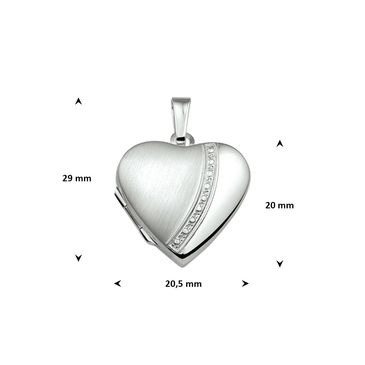 Zilveren medaillon in de vorm van een hart. Het medaillon heeft een hoogte van 20mm excl. oogje en een breedte van 20.5mm.