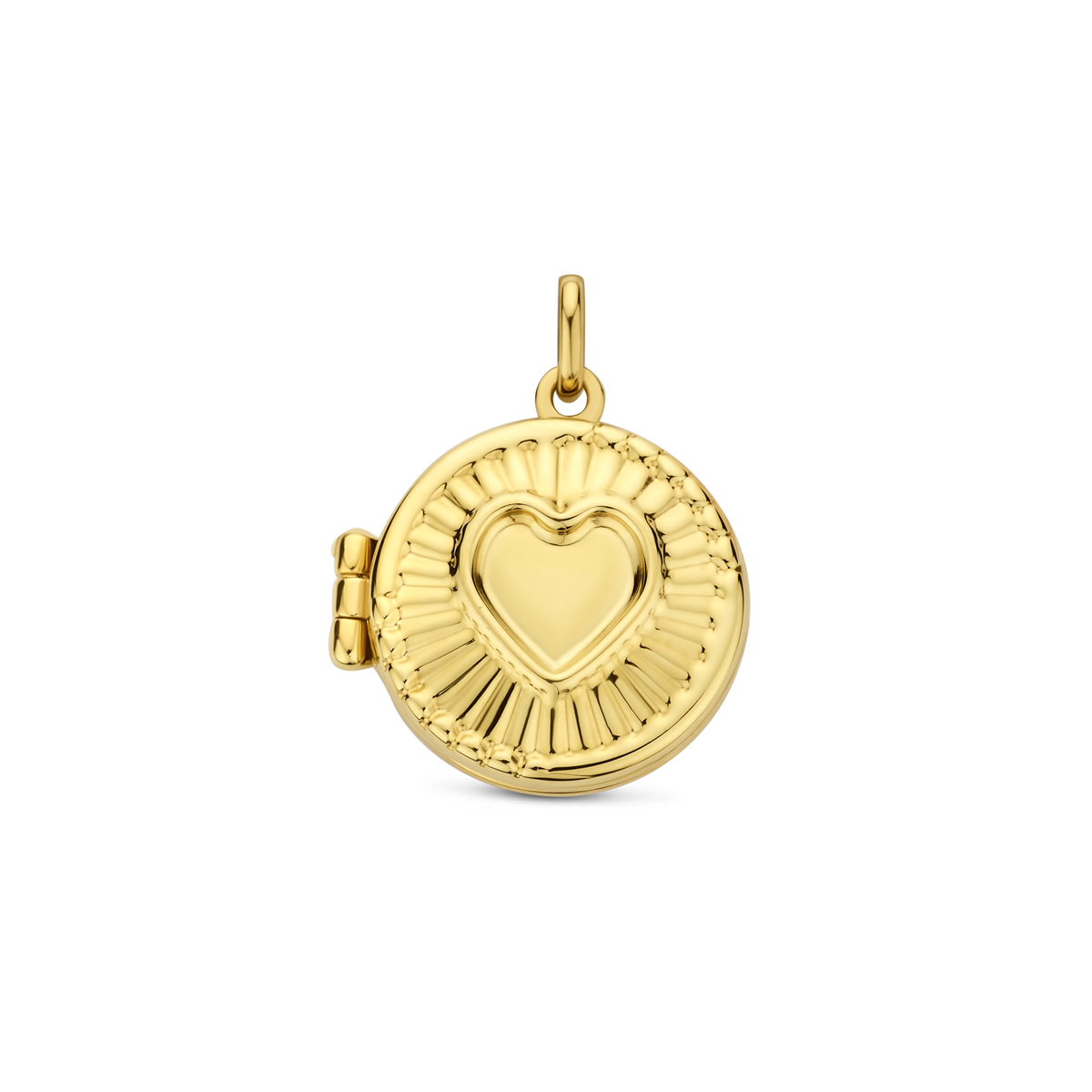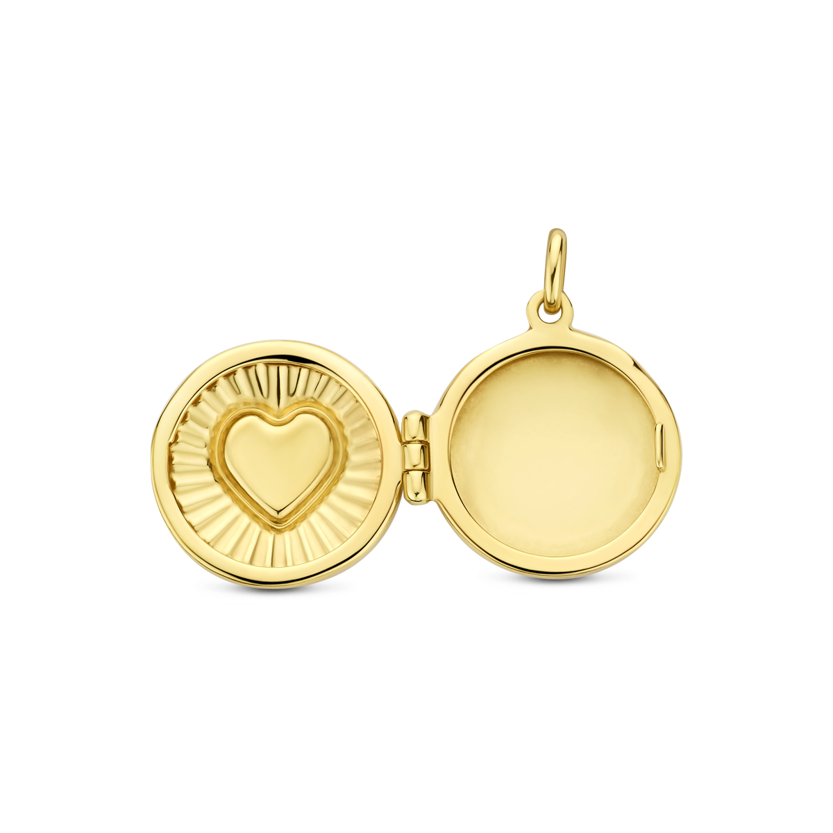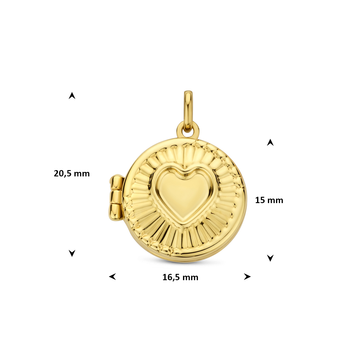 14k Geelgouden medaillon met een hartje. Het medaillon heeft een breedte van 16.5mm en een hoogte van 15mm excl. oogje.