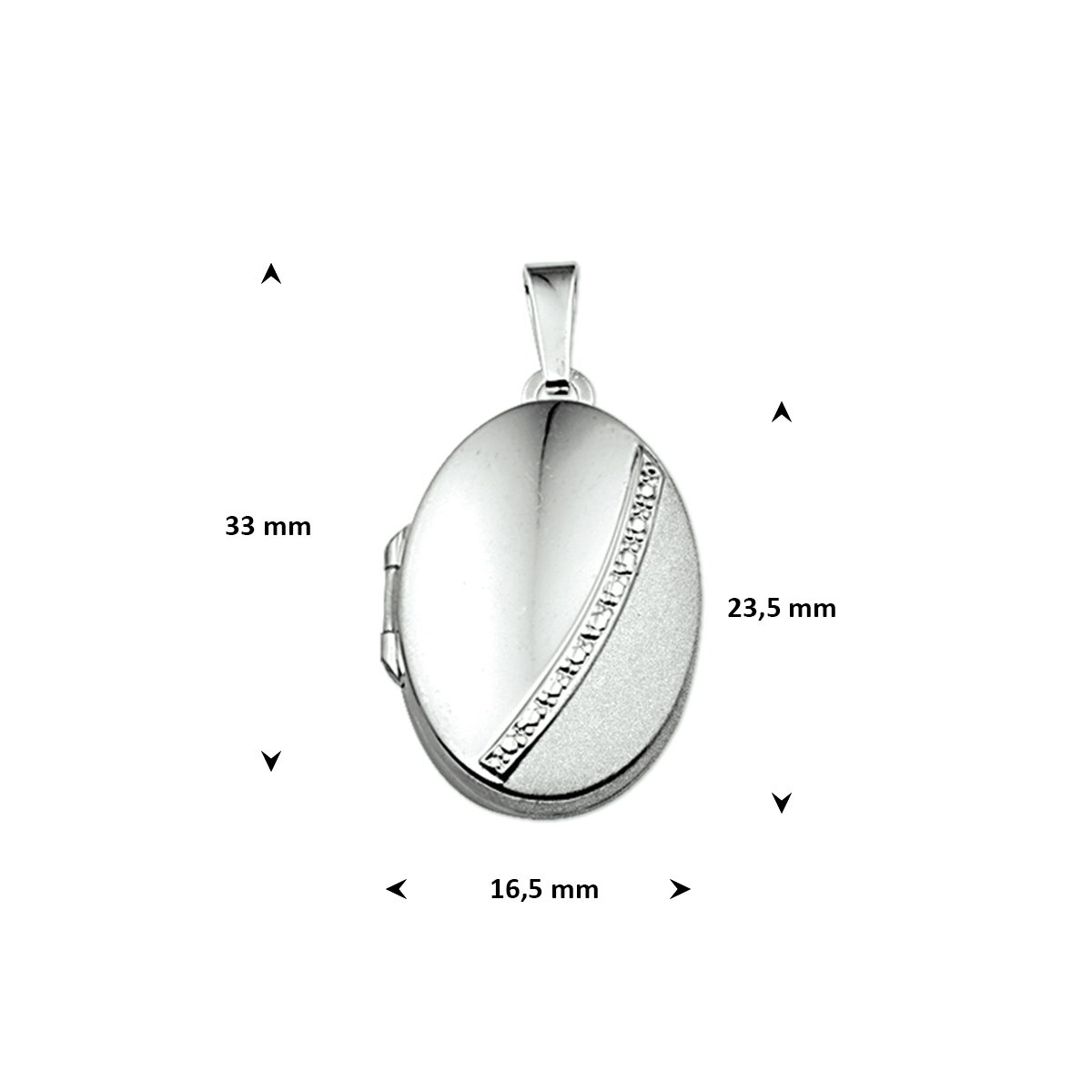 Gerhodineerd 925 zilveren medaillon met een hoogte van 23.5mm excl. oogje en een breedte van 16.5mm.