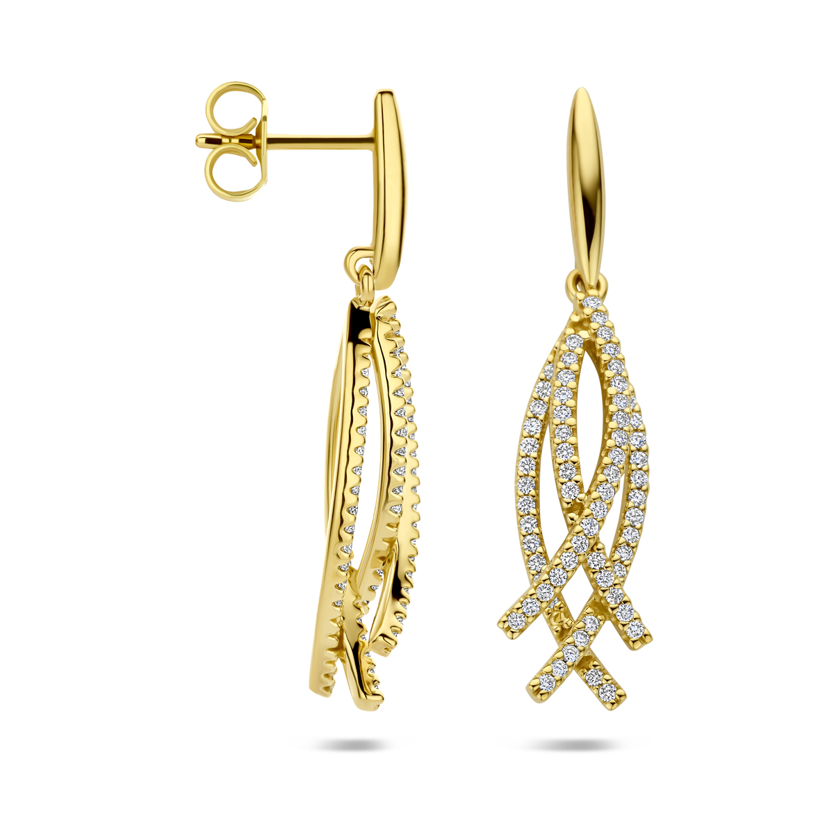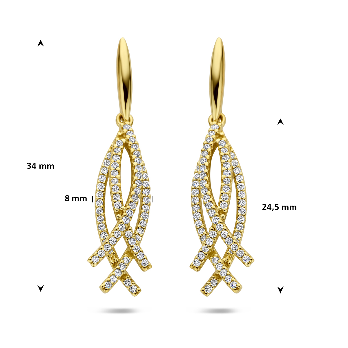 14k Geelgouden oorhanger uitgevoerd met diamant. De oorhangers hebben een totale hoogte van 34mm. Het totale diamantgewicht is 0.50ct.