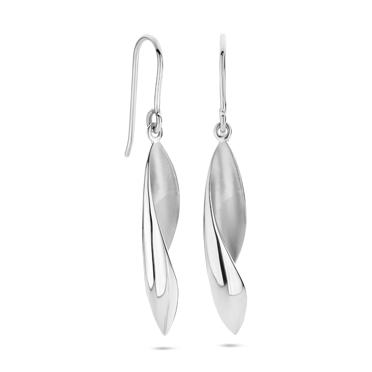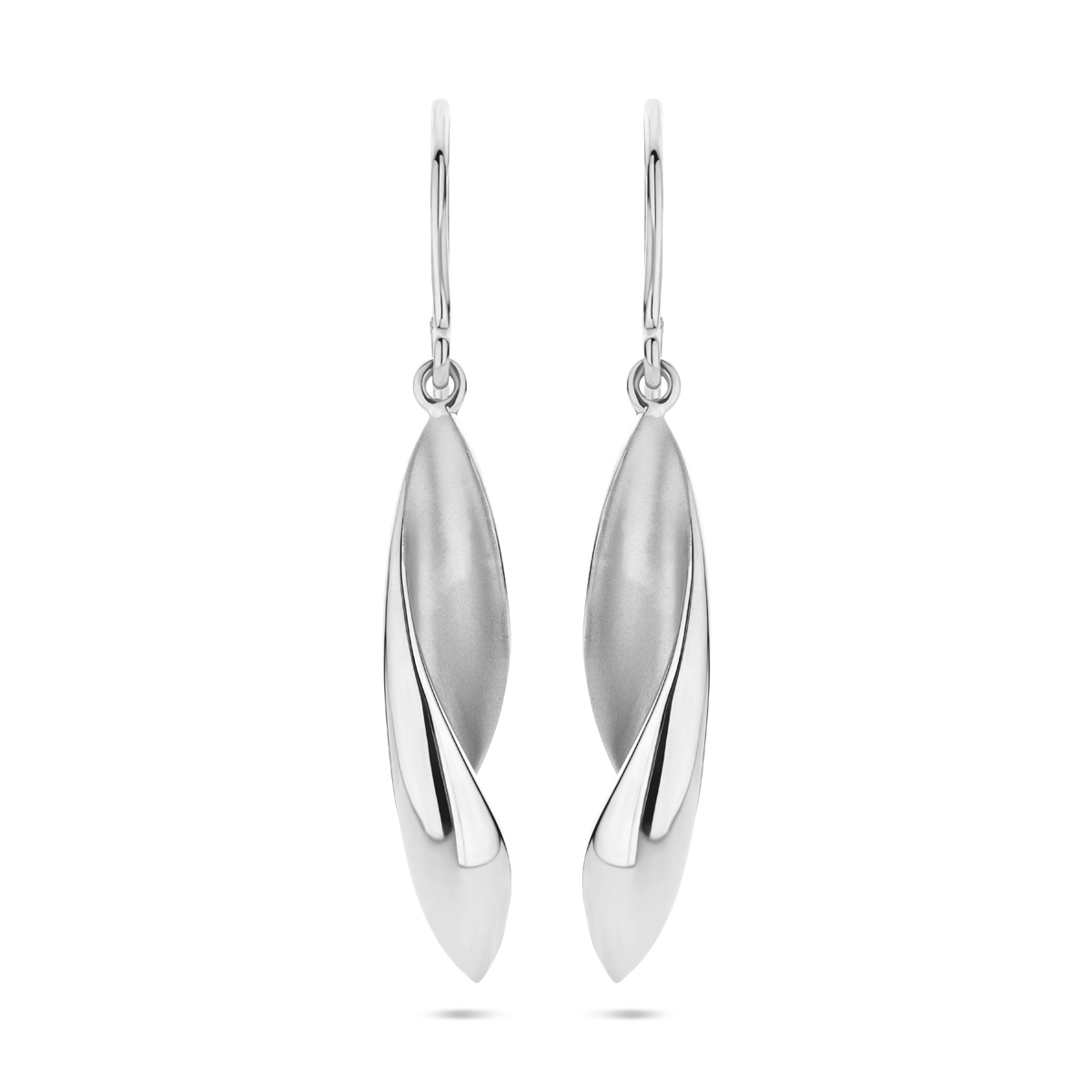 Gerhodineerd 925 zilveren oorhangers met franse haak uitgevoerd in poli/mat. De oorhangers hebben een totale hoogte van 45mm en de hanger heeft een afmeting van 33×6.5mm.