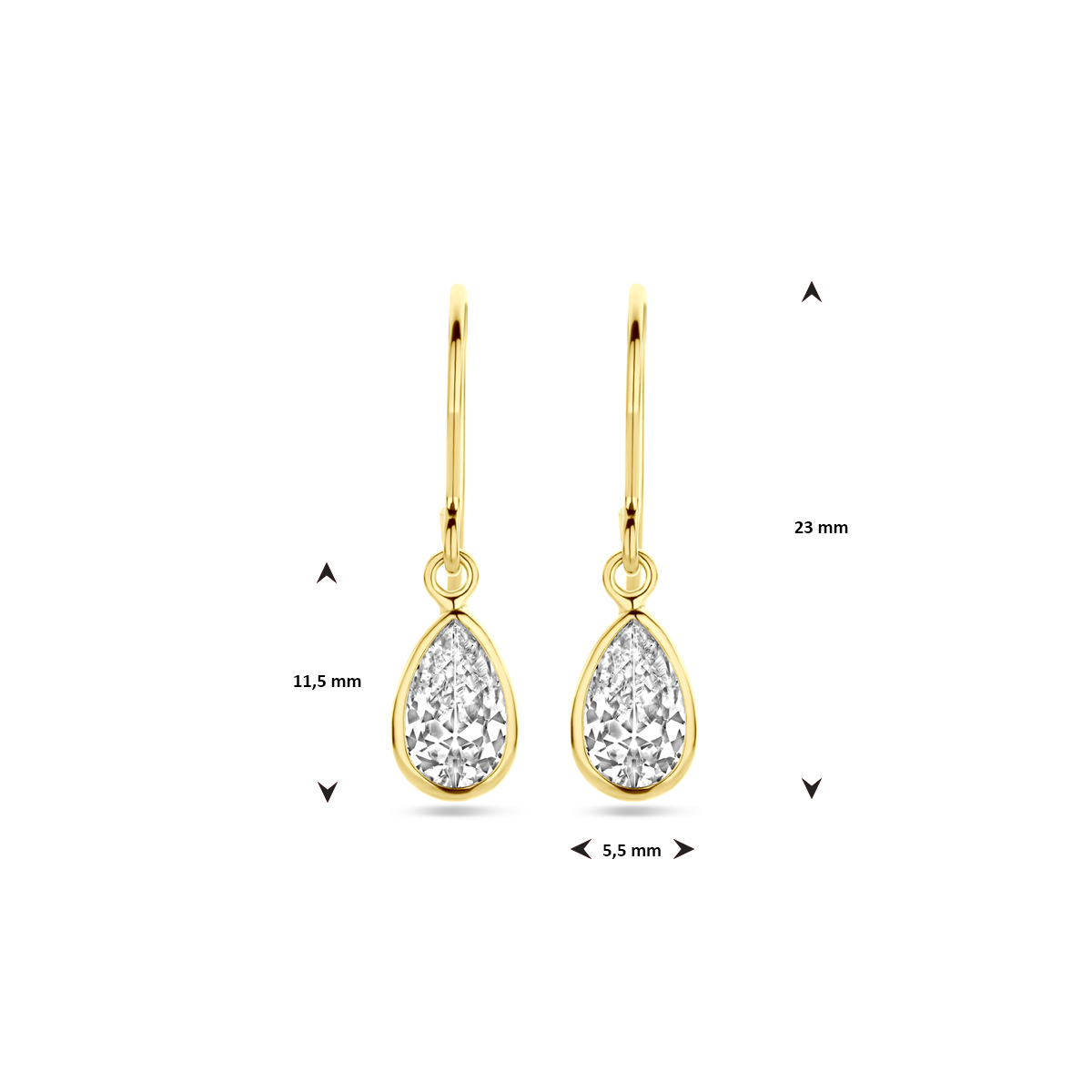 14k Geelgouden oorhangers uitgevoerd met zirkonia. De oorhangers hebben een totale hoogte van 23mm.