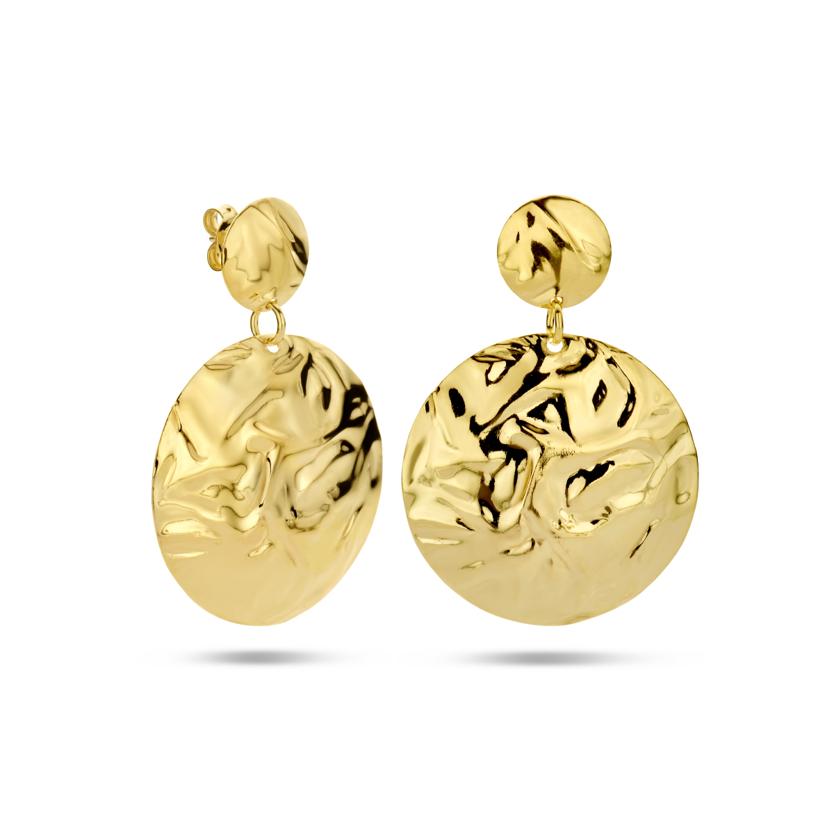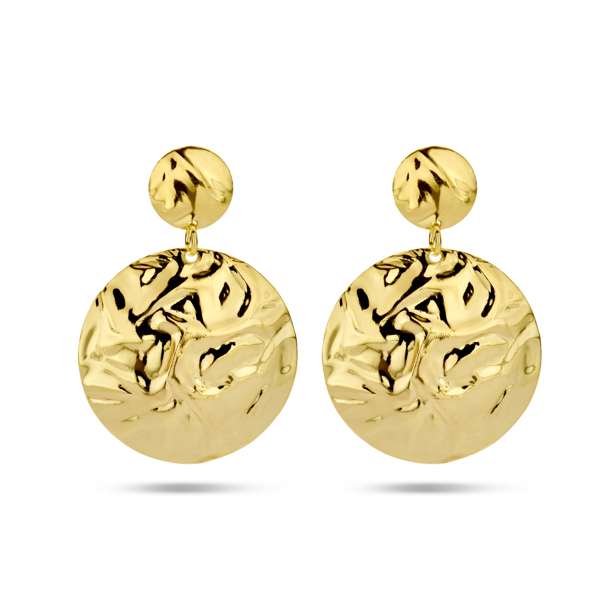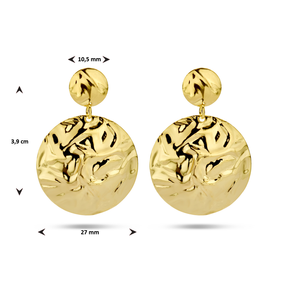 Verguld op 925 zilveren ronde oorhangers. De oorhangers hebben een totale hoogte van 3.9cm en een breedte van 27mm. Geen garantie op de plating.
