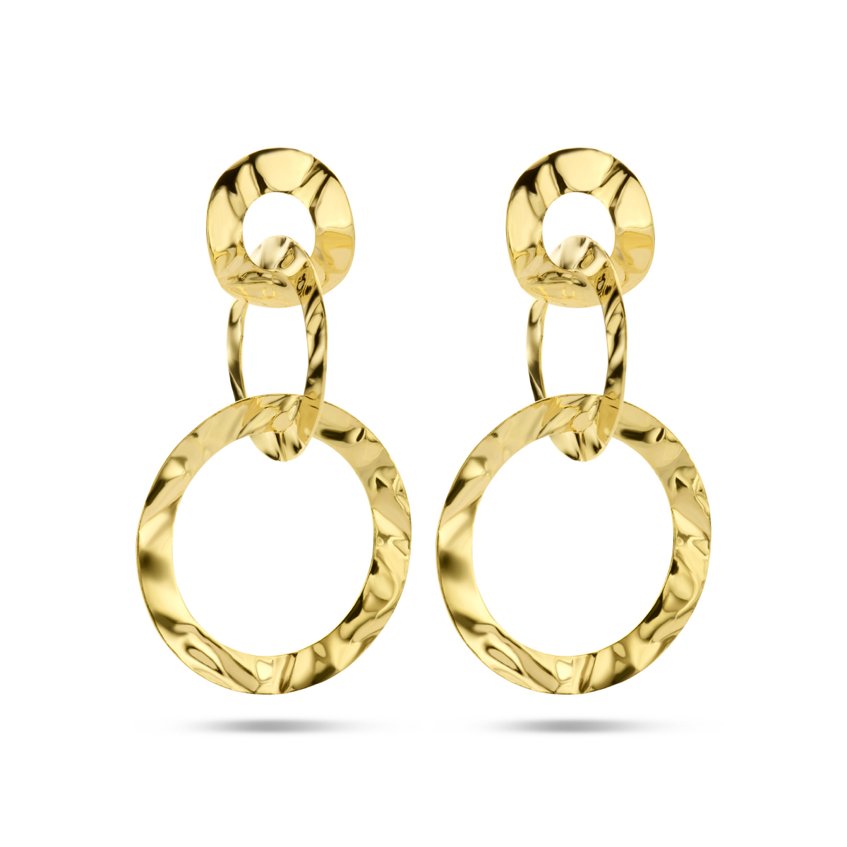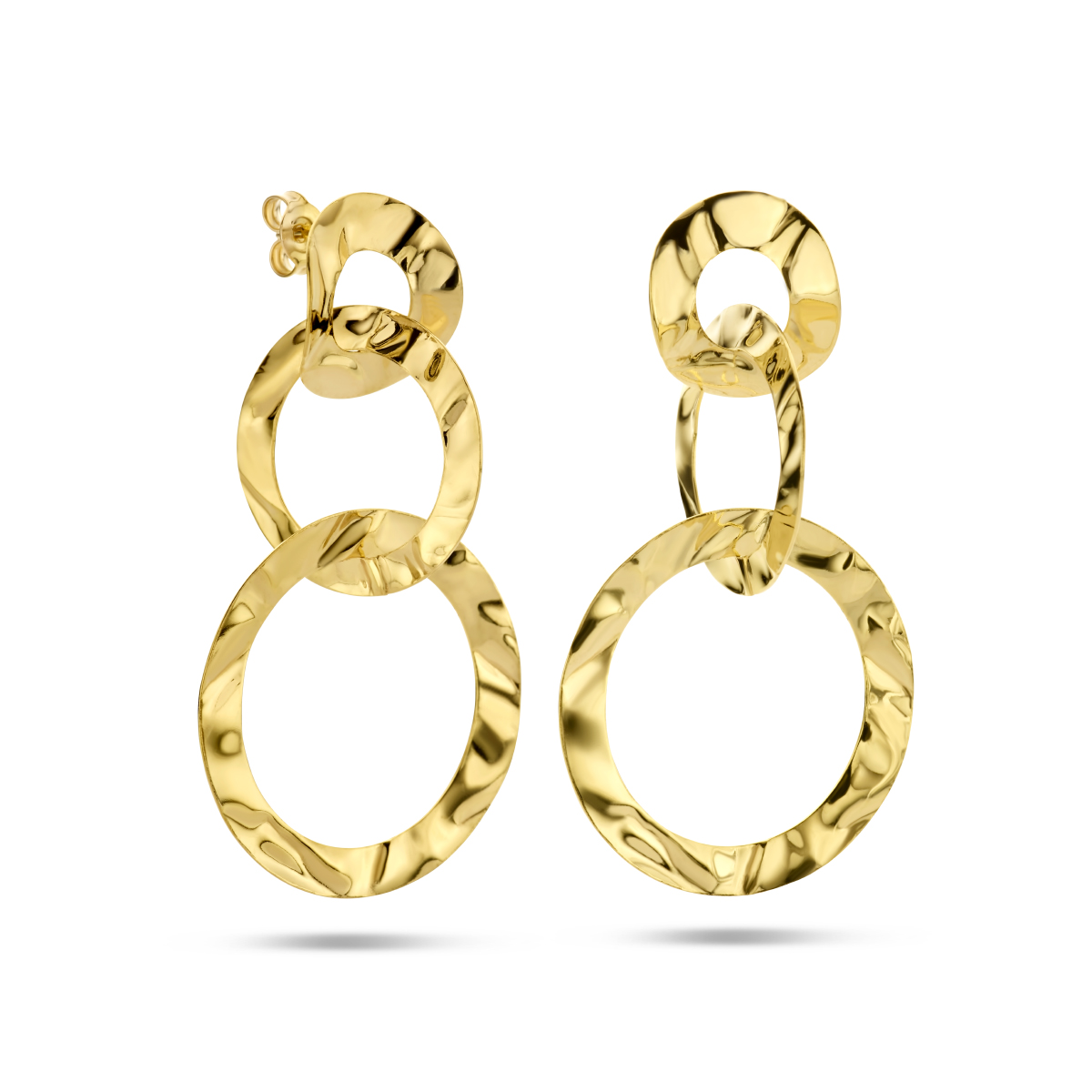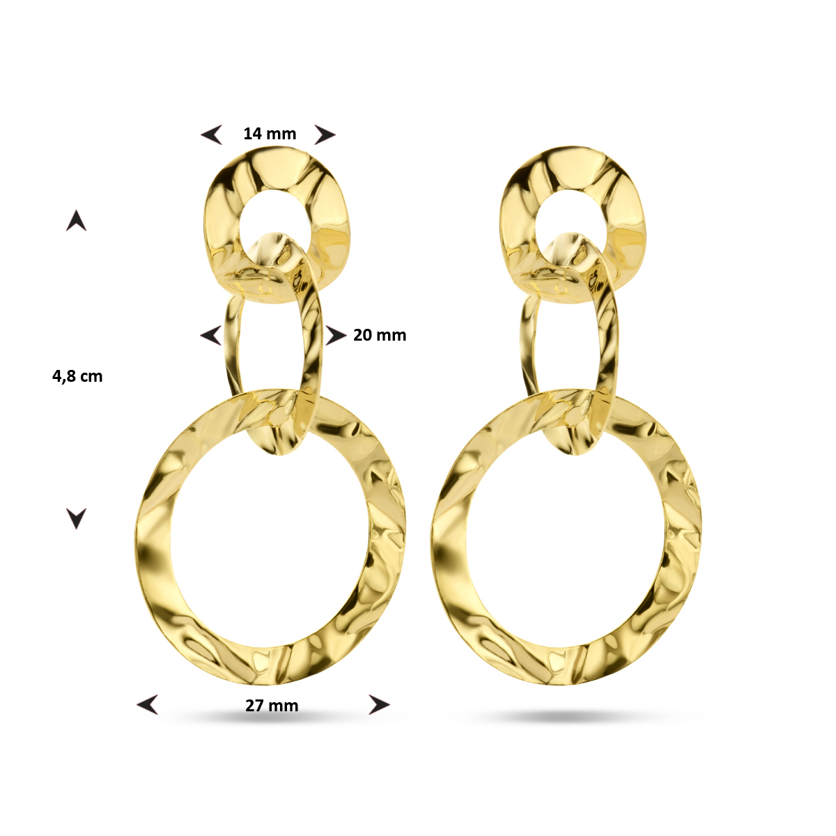 Verguld op 925 zilveren ronde oorhangers. De oorhangers hebben een totale hoogte van 4.8cm en een breedte van 27mm. Geen garantie op de plating.