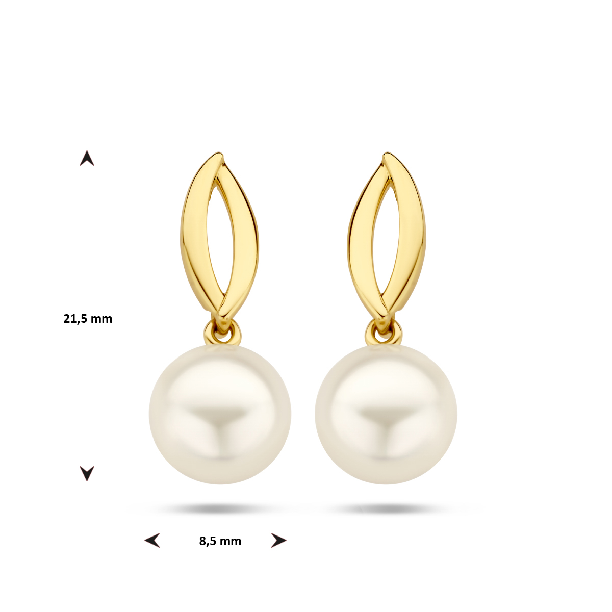 14k Geelgouden oorhangers uitgevoerd met een zoetwaterparel van 8.5mm. De oorhangers hebben een totale hoogte van 21.5mm.