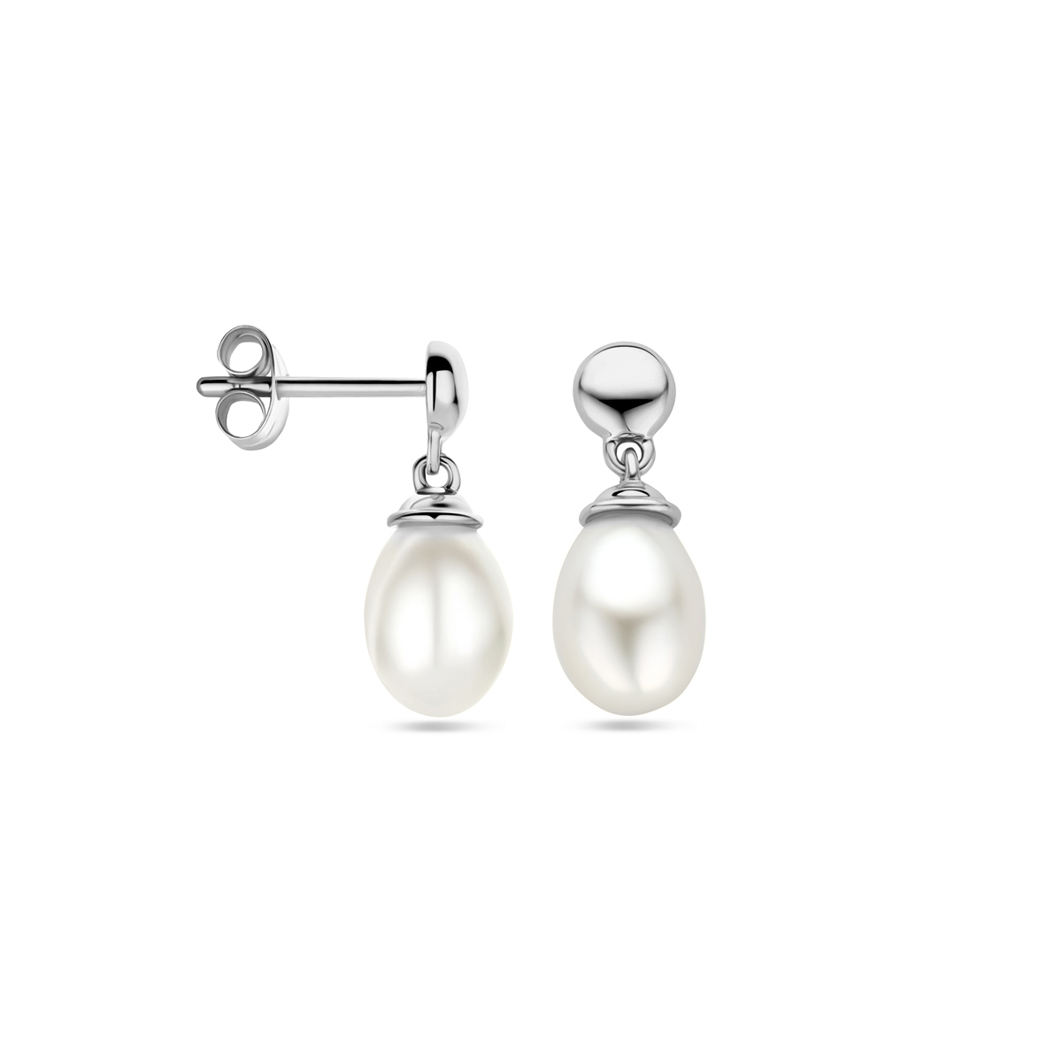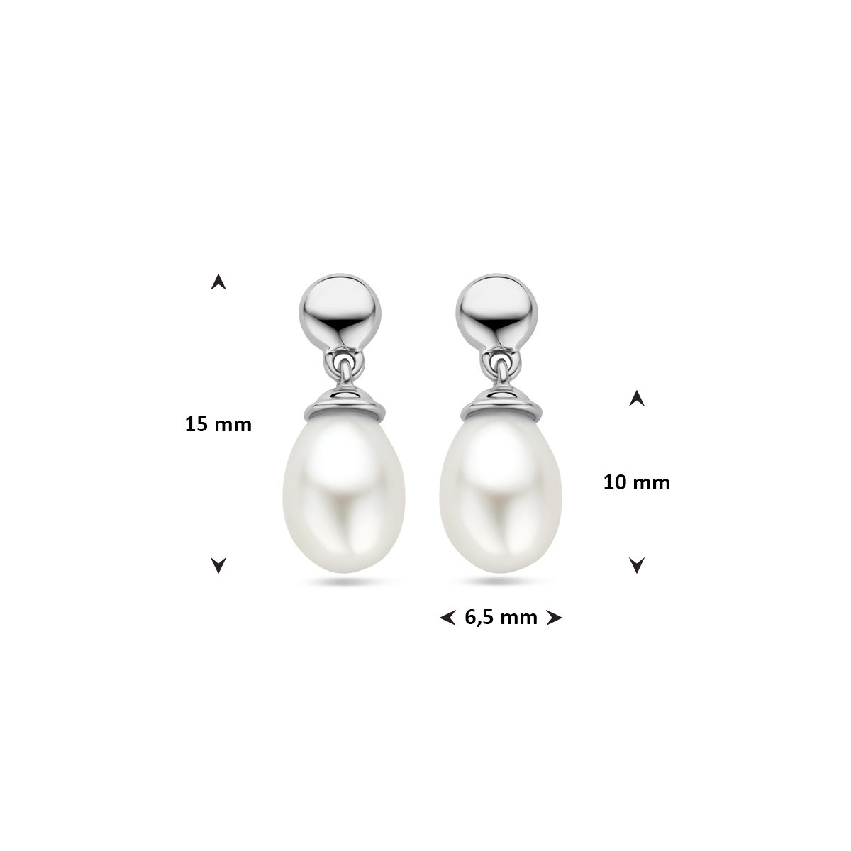14k Witgouden oorhangers uitgevoerd met een parel van 10×6.5mm. De oorhangers hebben een totale hoogte van 1.5cm.