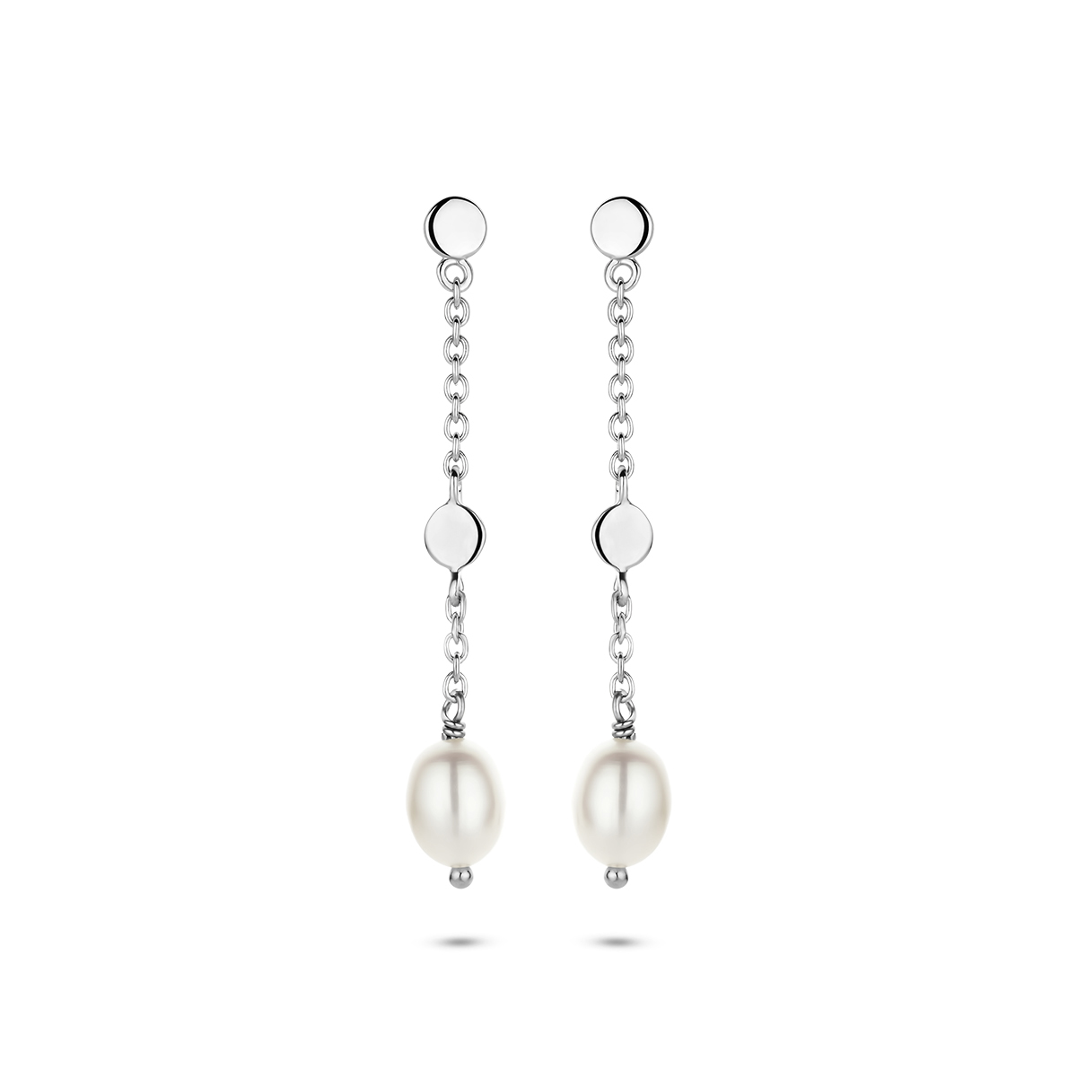 Gerhodineerd 925 zilveren oorhangers uitgevoerd met rondjes en zoetwaterparel. De oorhangers hebben een totale hoogte van 35mm.
