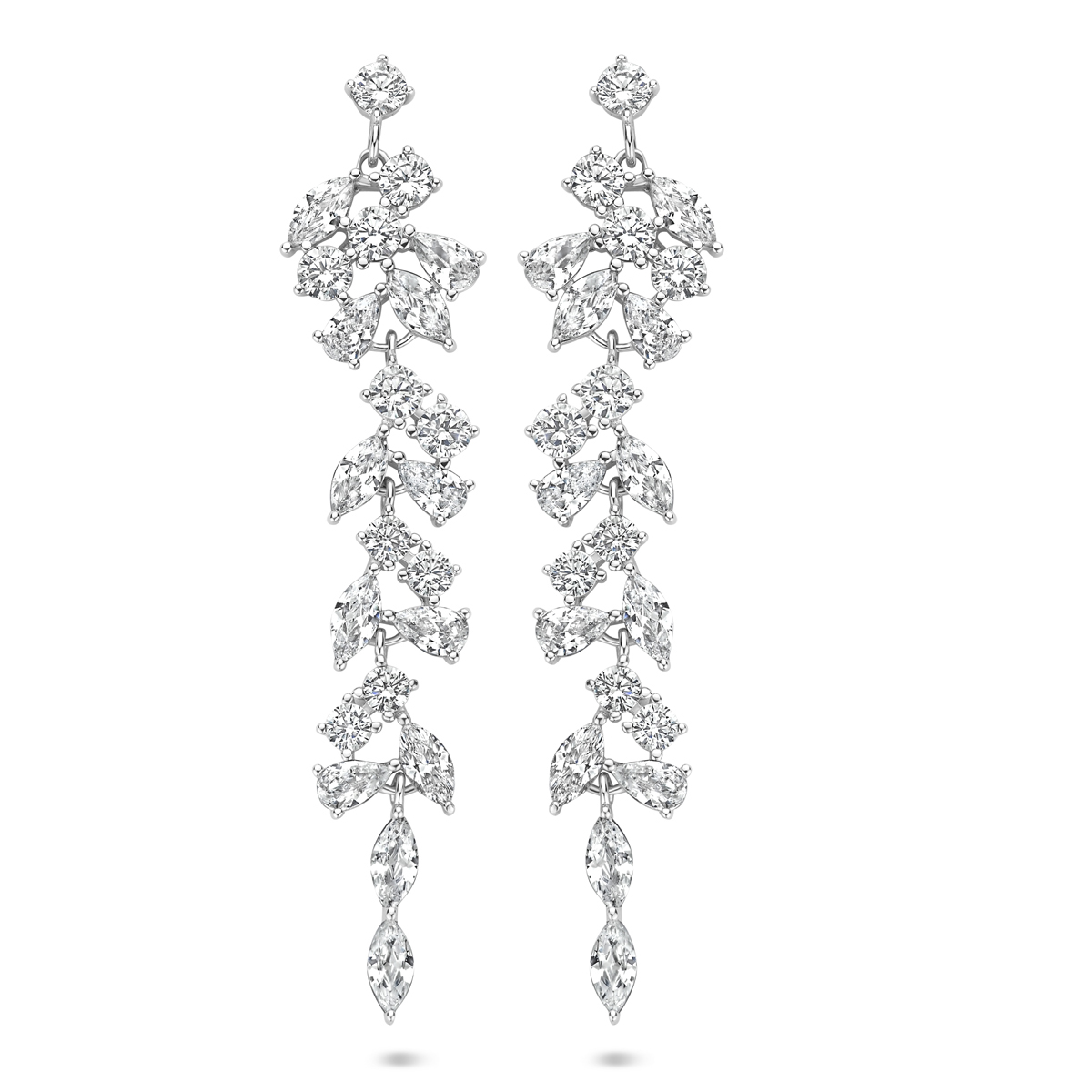 Gerhodineerd 925 zilveren oorhangers uitgevoerd met zirkonia. De oorhangers hebben een lengte van 60mm en een breedte van 12mm.
