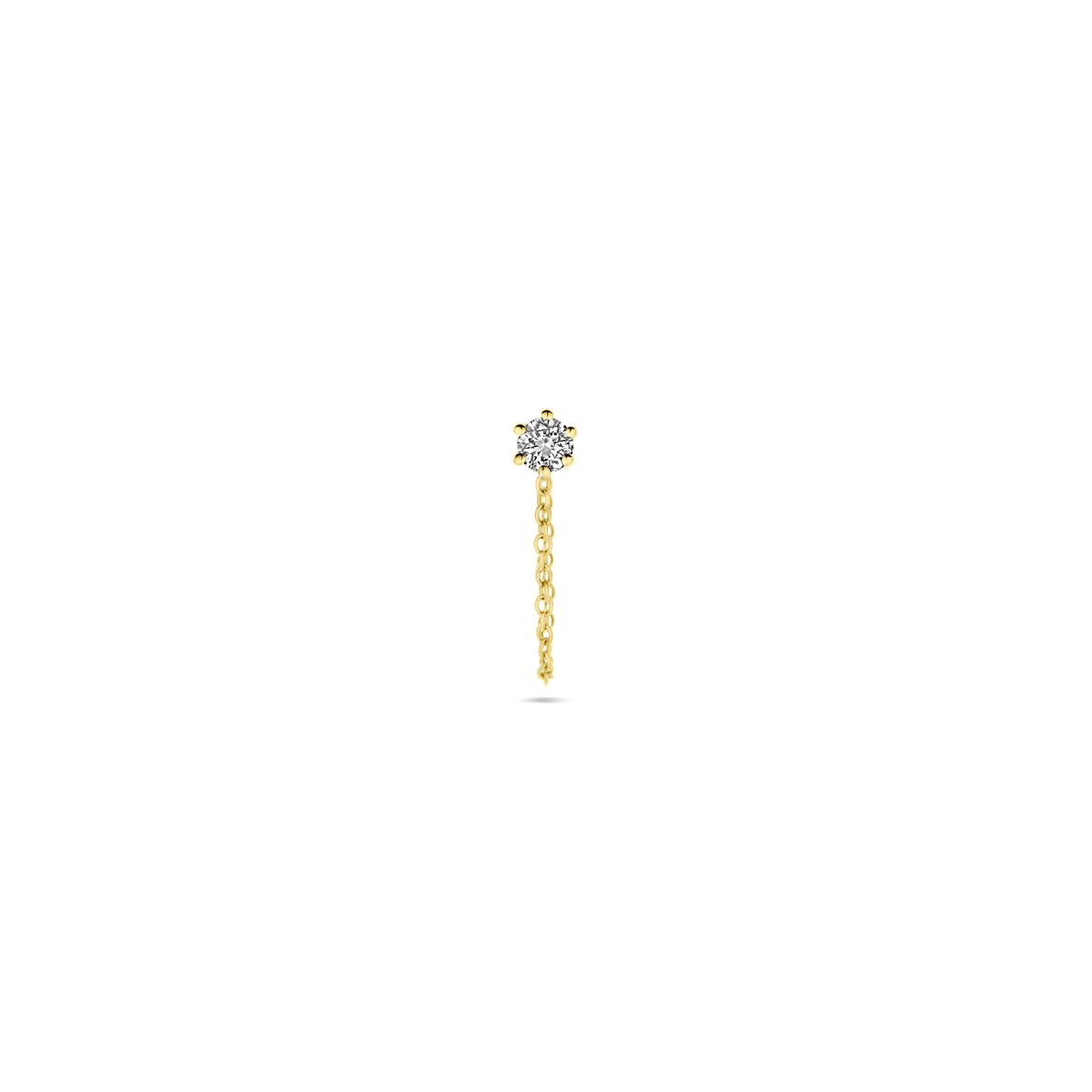 14k Geelgouden oorknop uitgevoerd met een diamant. De diamant heeft een diameter van 2.5mm. Deze oorsieraden worden per stuk verkocht ipv per paar.