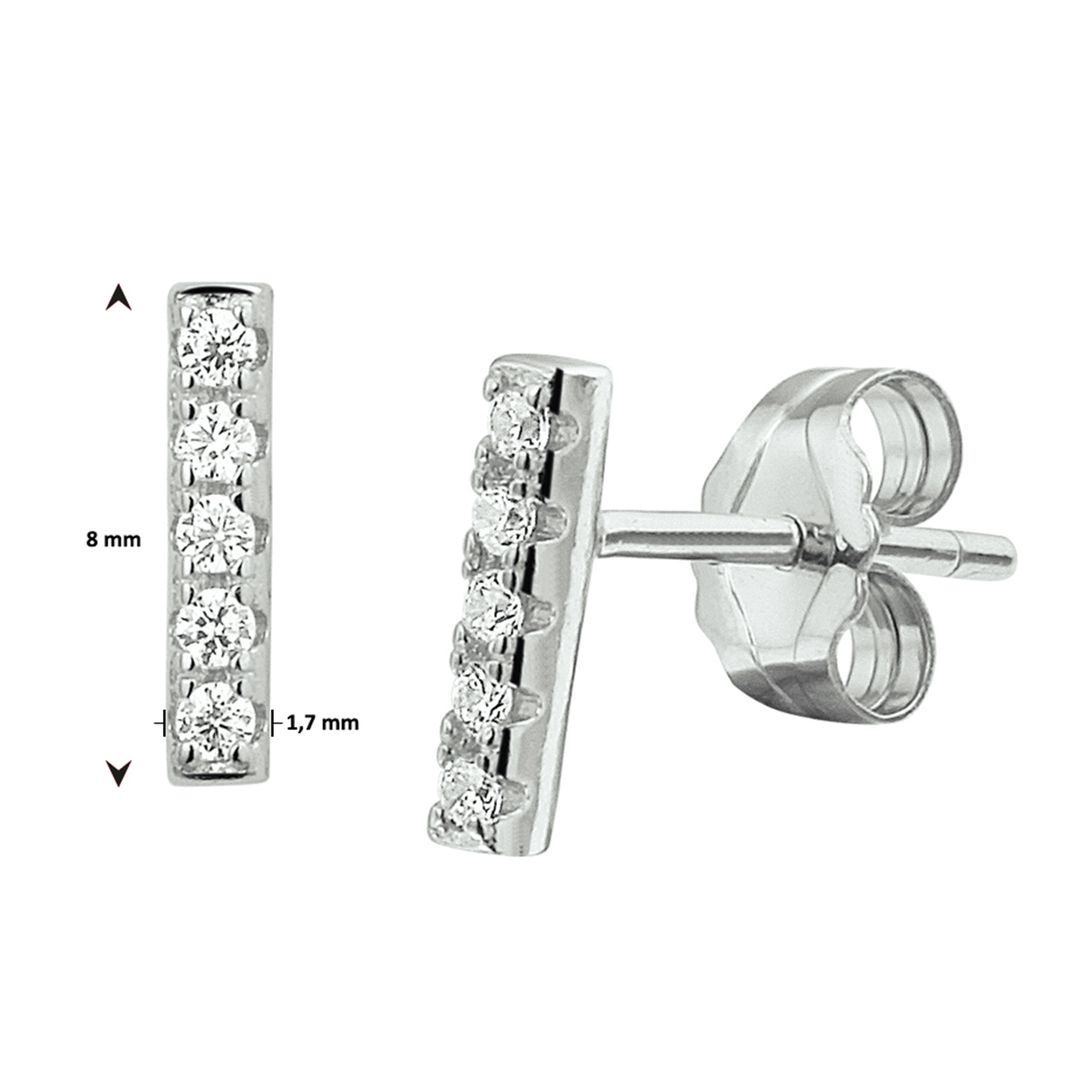 oorknoppen balkje zirkonia 8 mm zilver gerhodineerd