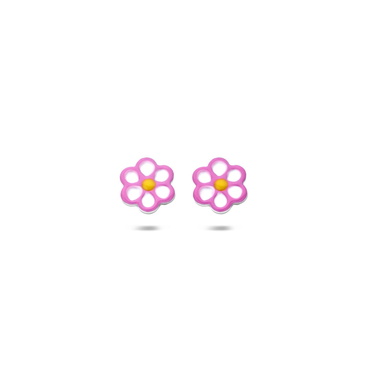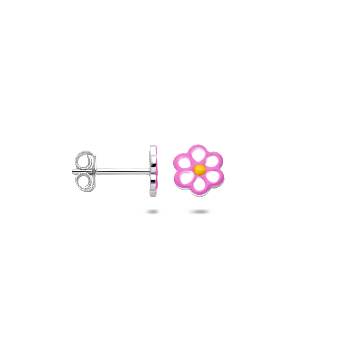 925 Zilveren oorsteker met een lichtroze bloemetje.