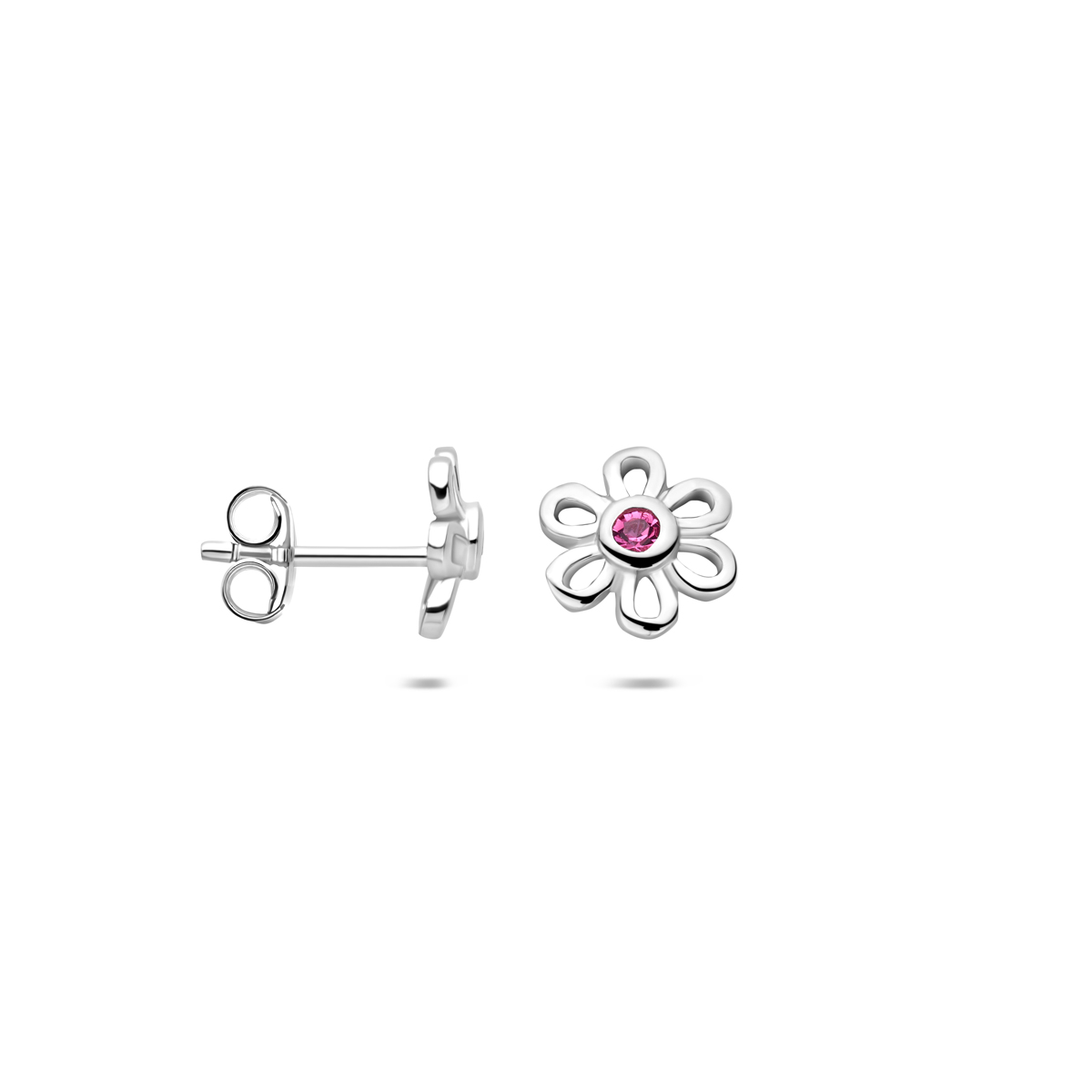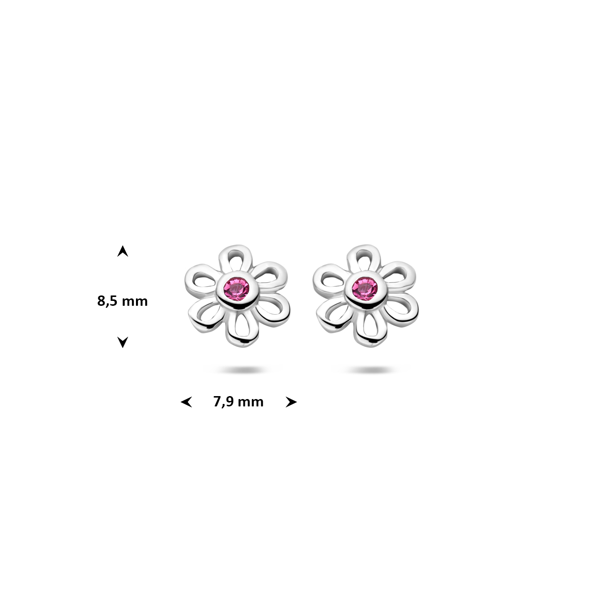 oorknoppen bloem zirkonia 8,5 mm zilver gerhodineerd
