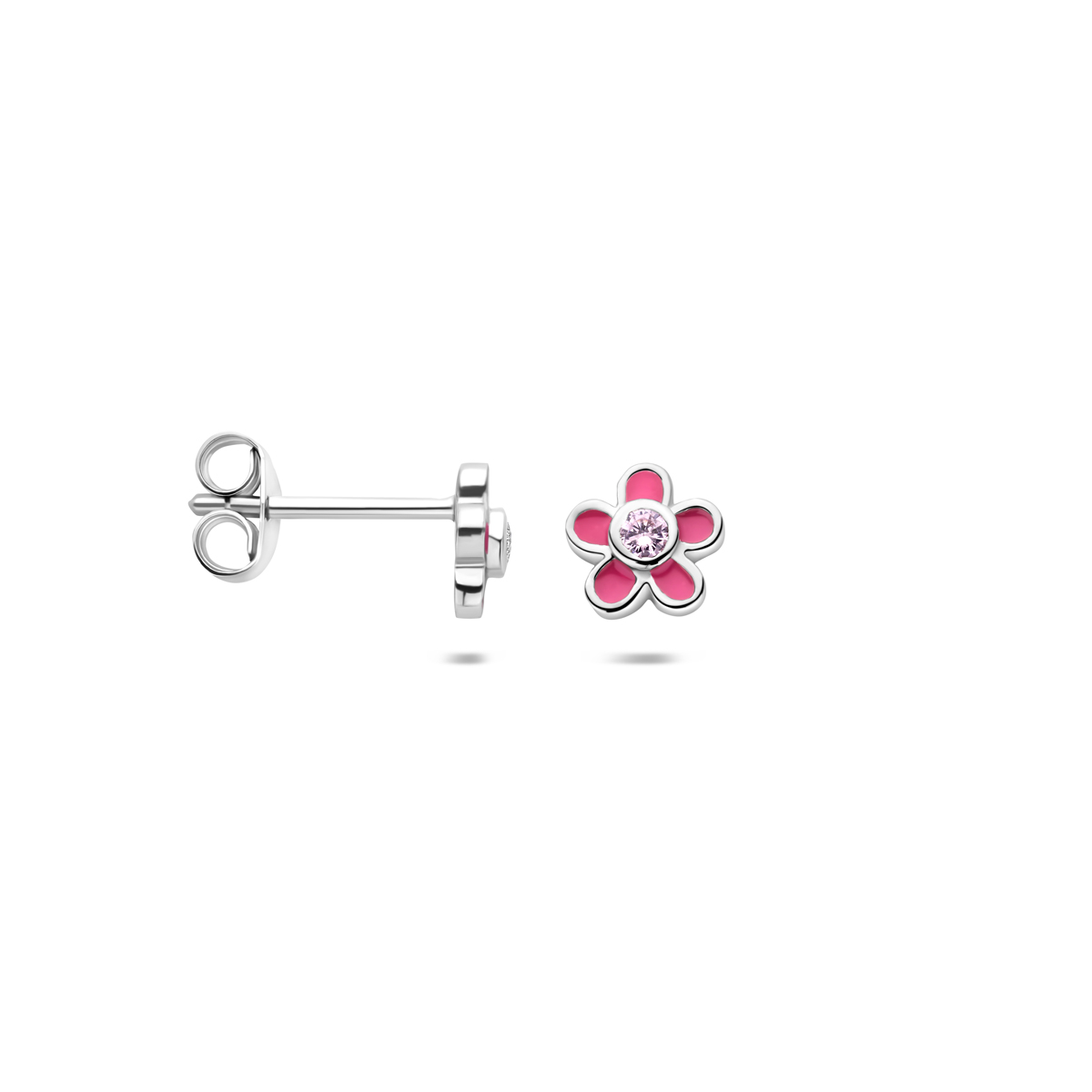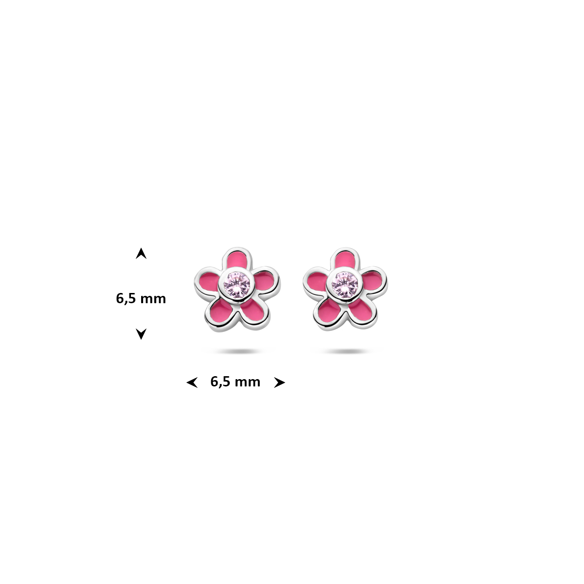 oorknoppen bloem zirkonia emaille 6,5 mm zilver gerhodineerd