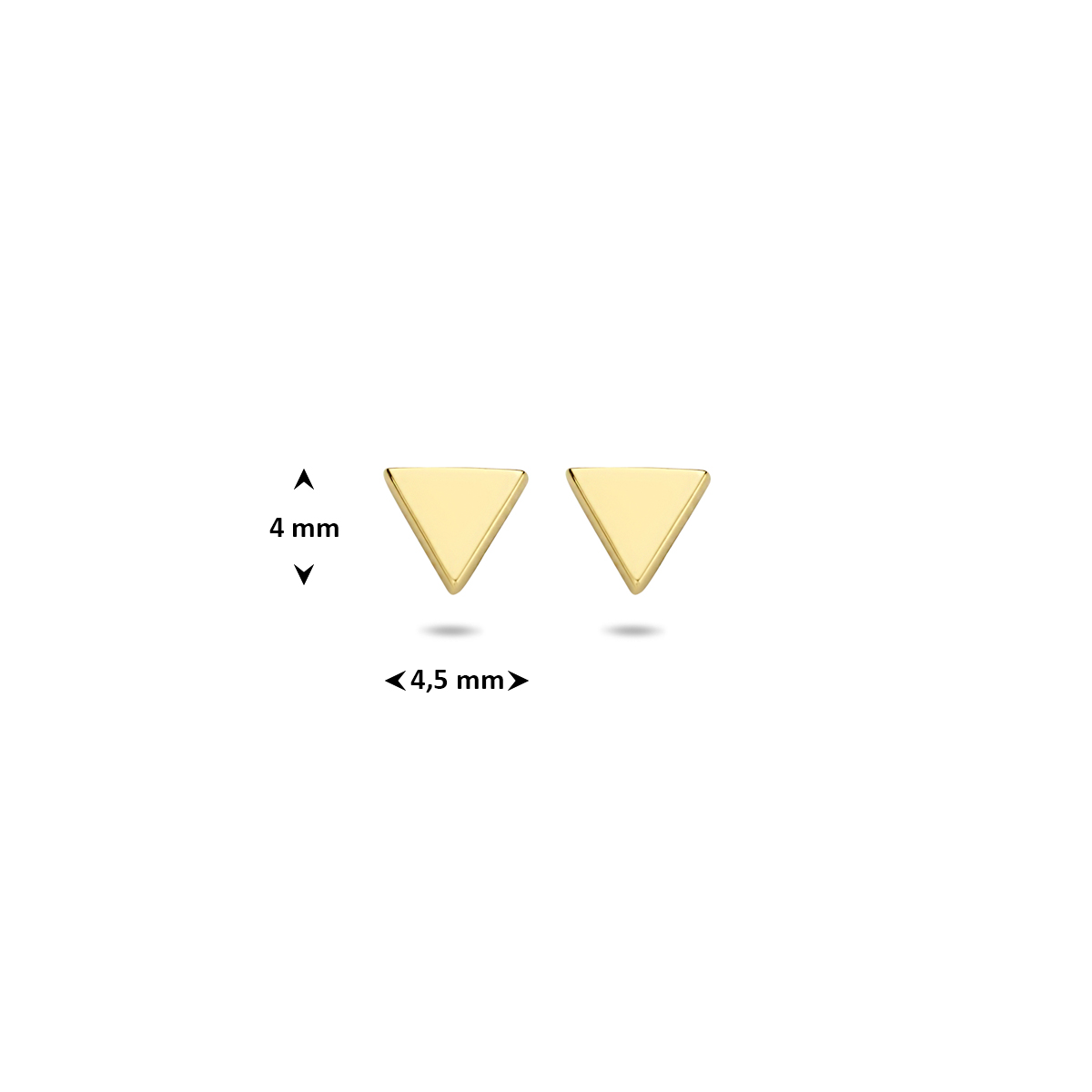 Trendy geelgouden driehoek oorknoppen van 4×4,5mm met een poli afwerking en stevige pousette sluiting. De oorknoppen zijn ook verkrijgbaar in het rosegoud en uitgevoerd met een rondje.