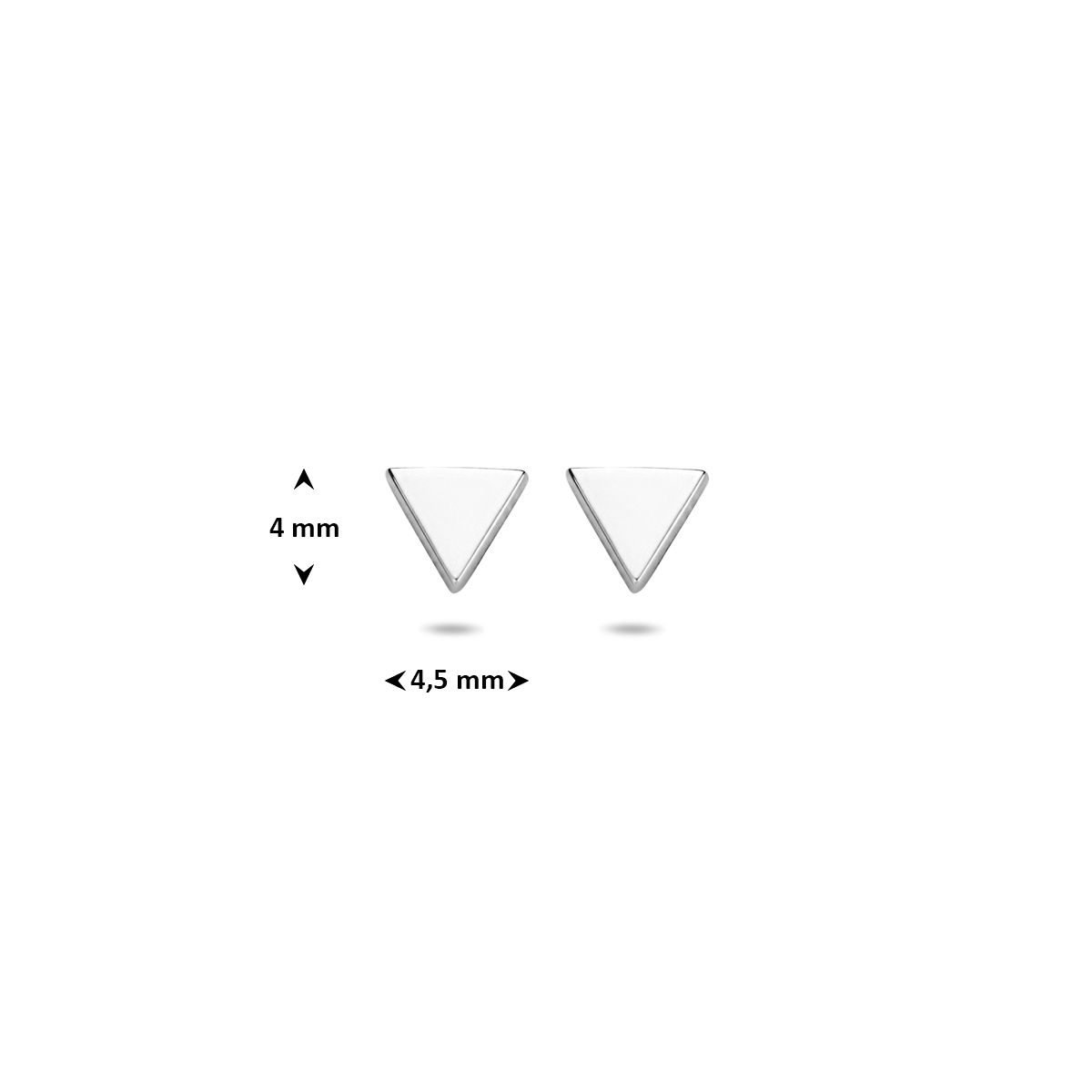 Trendy witgouden oorknoppen in de vorm van een driehoek. De driehoekjes hebben een afmeting van 4×4,5mm. De oorknoppen hebben een subtiele uitstraling en kunnen dagelijks gedragen worden.