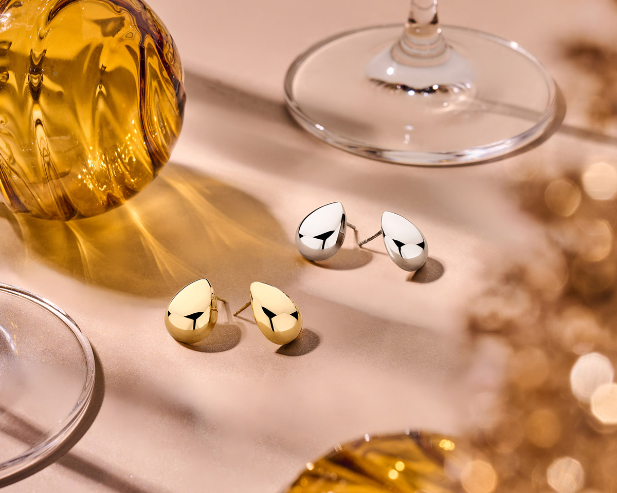 Verguld 925 zilveren oorknoppen uitgevoerd in de vorm van een druppel. De oorknoppen hebben een afmeting van 16x12mm. Geen garantie op plating.