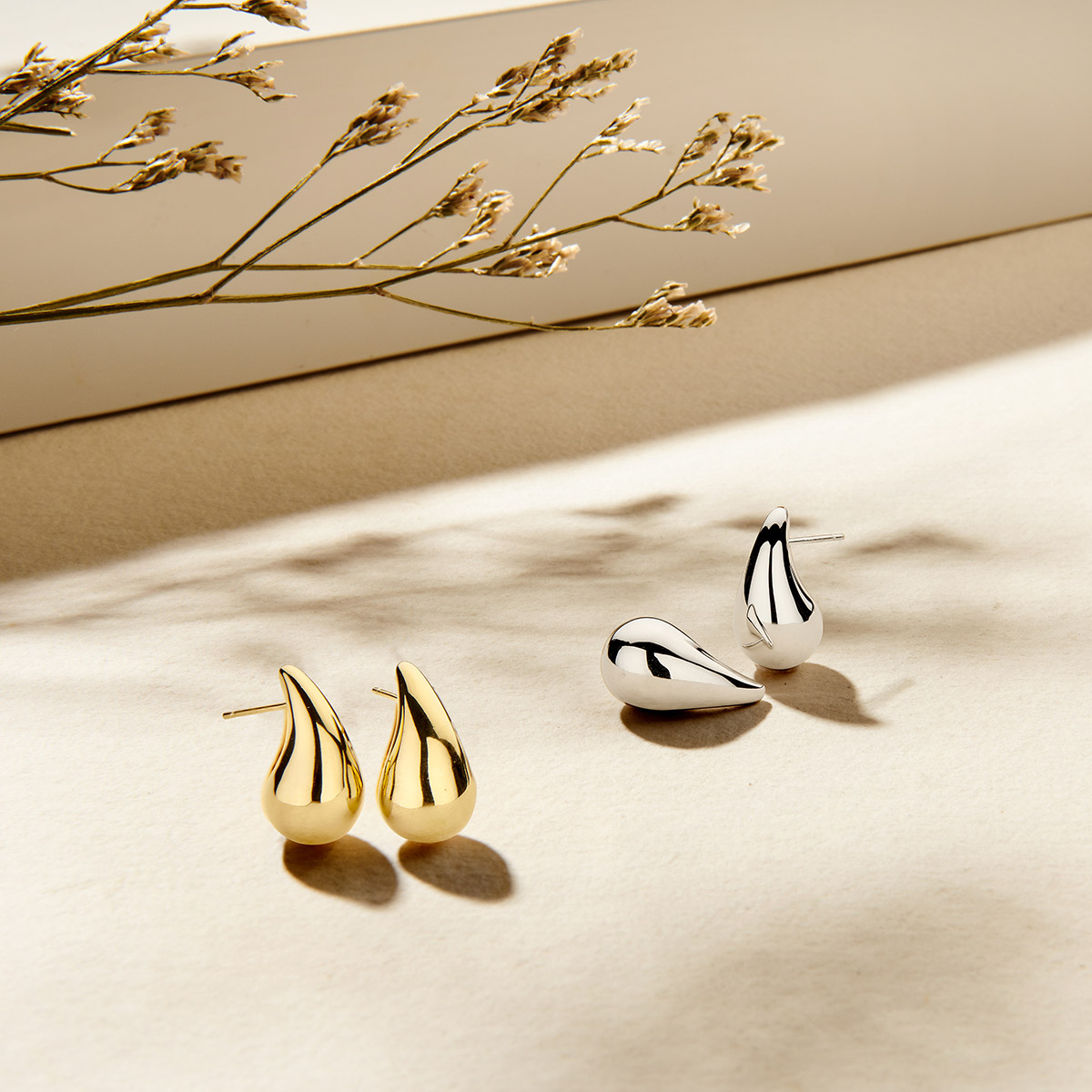 Gerhodineerd 925 zilveren oorknoppen uitgevoerd in de vorm van een druppel. De oorknoppen hebben een afmeting van 20×10.5mm.