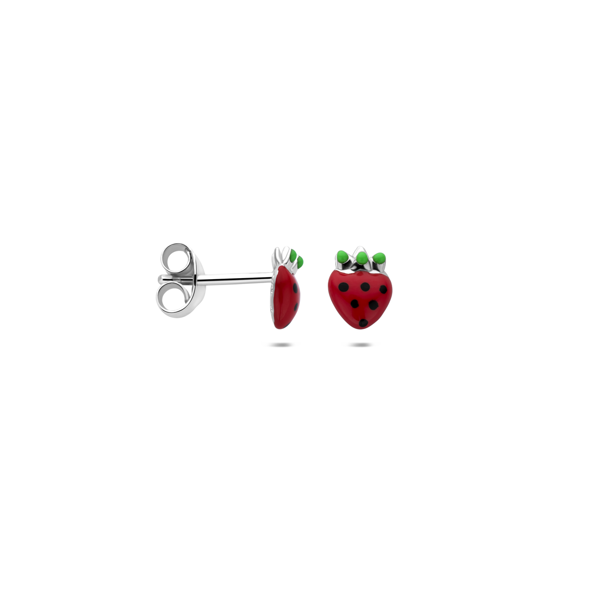 Gerhodineerd 925 zilveren oorknoppen uitgevoerd in de vorm van een aardbei. De oorknoppen hebben een afmeting van 6,5x5mm.