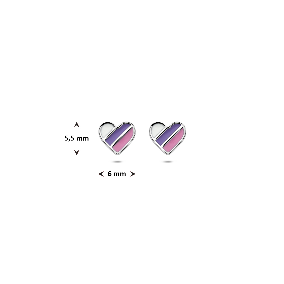 Gerhodineerd 925 zilveren oorknoppen uitgevoerd in de vorm van een emaille hartje. De oorknoppen hebben een afmeting van 5,5x6mm.