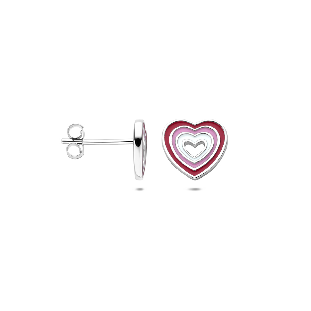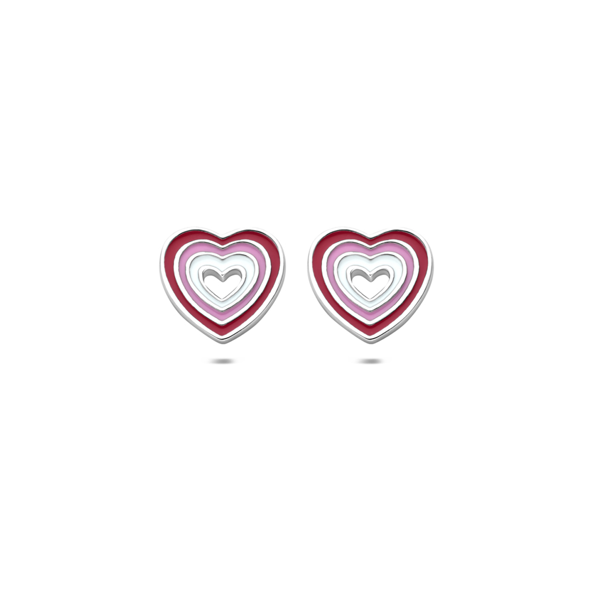 Gerhodineerd 925 zilveren oorknoppen uitgevoerd met een emaille hartje. De oorknoppen hebben een afmeting van 9×8,5mm.