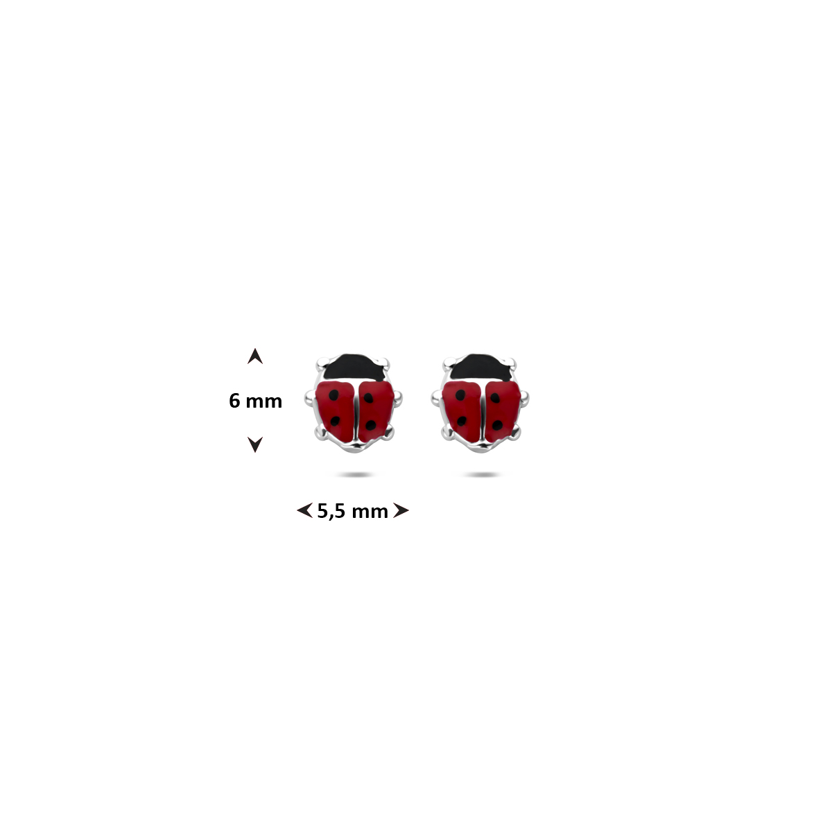 oorknoppen emaille lieveheersbeestje 6 mm zilver gerhodineerd