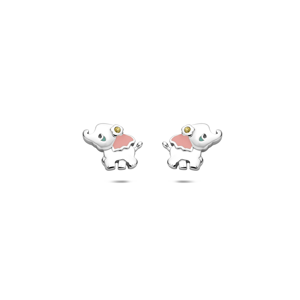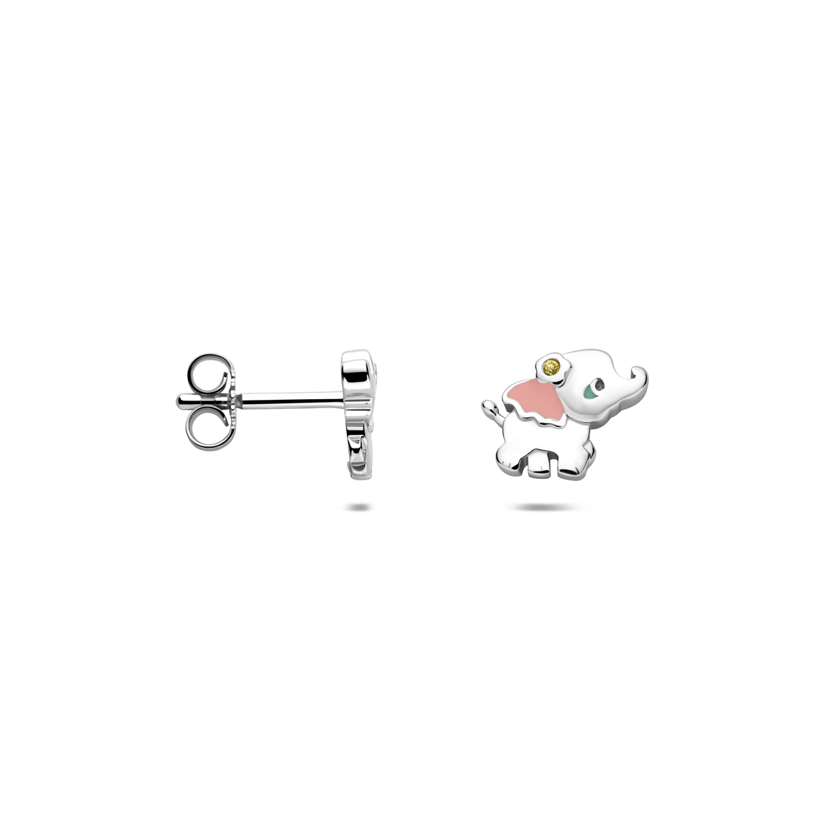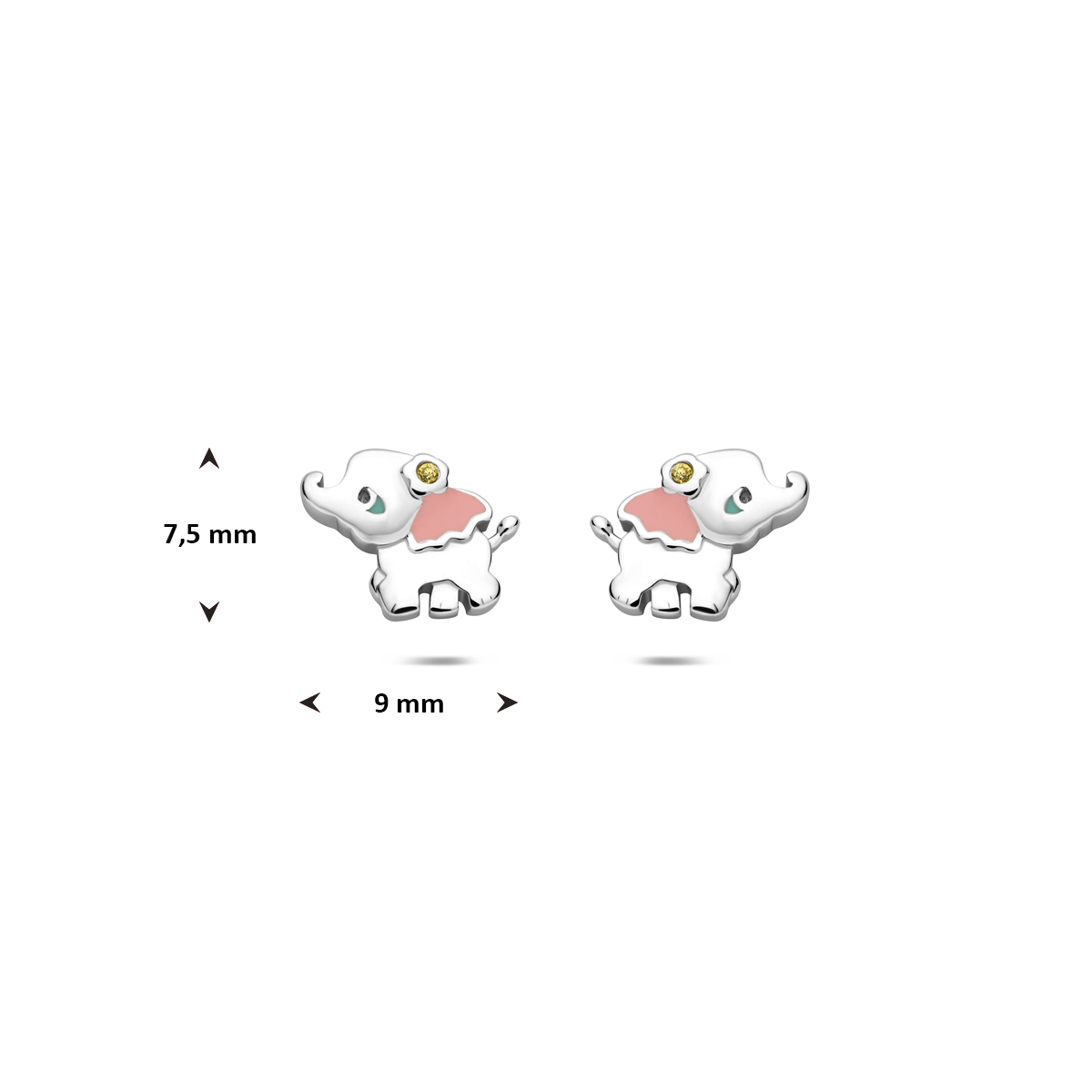 Gerhodineerd 925 zilveren oorknoppen uitgevoerd in de vorm van een olifant met zirkonia.