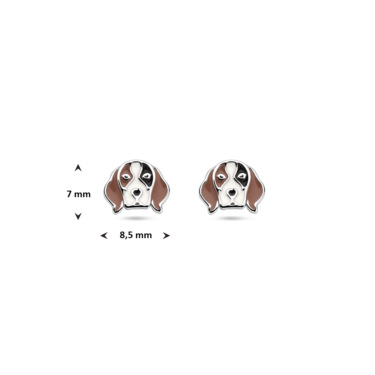 Gerhodineerd 925 zilveren oorknoppen uitgevoerd in de vorm van een hond. De oorknoppen hebben een afmeting van 7×8.5mm.